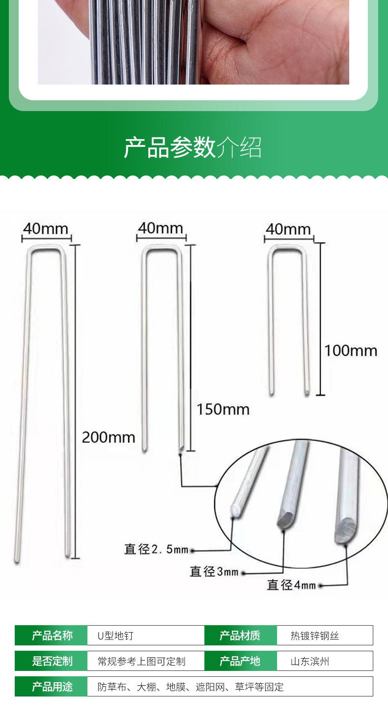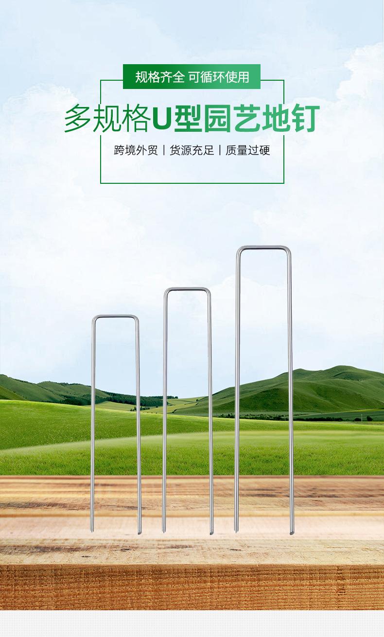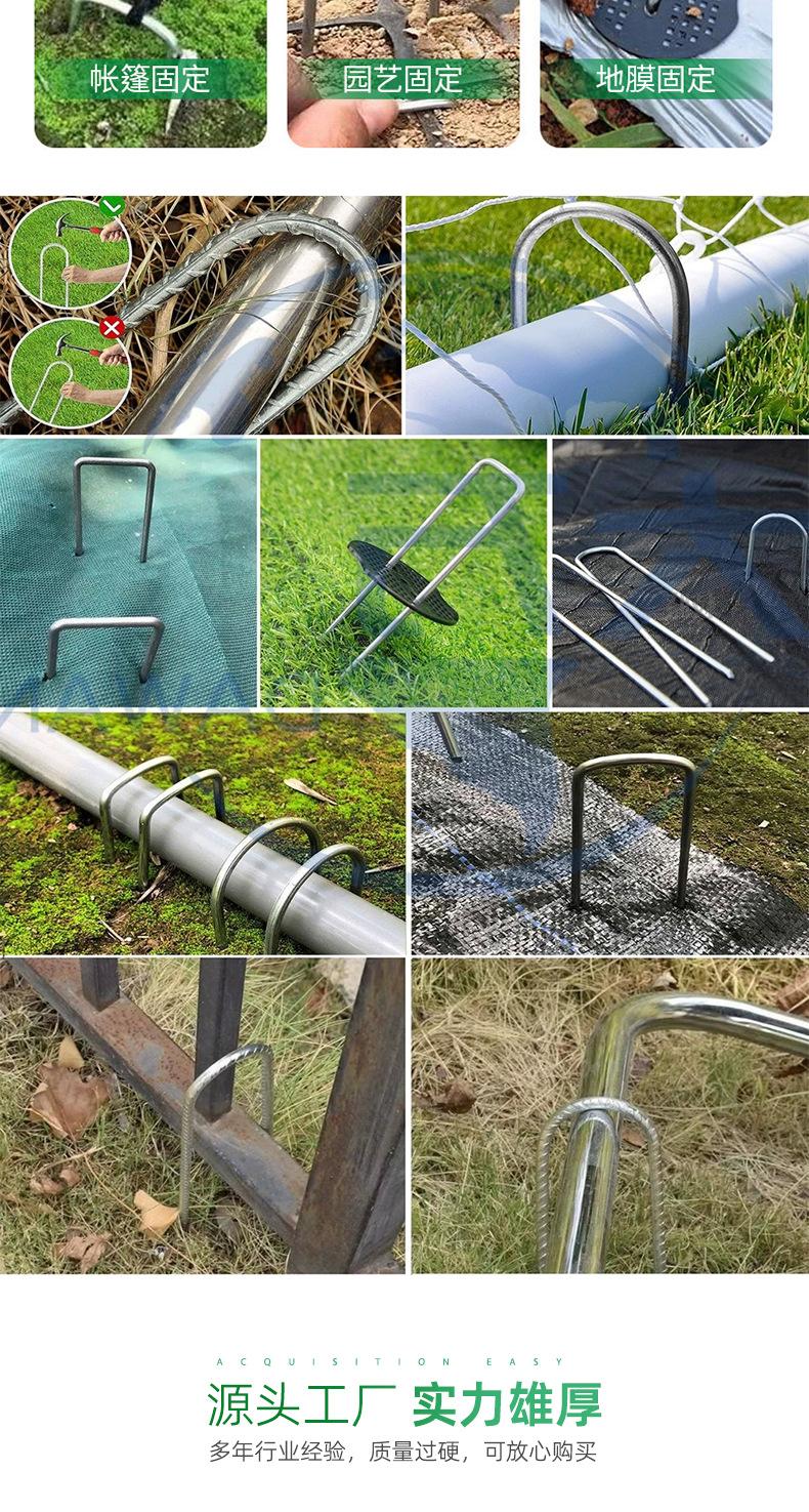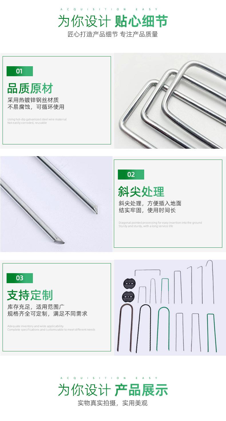 Clavo de suelo en forma de U soporte de tela anti-hierba para césped con punta oblicua tridimensional para sitio galvanizado clavo de suelo soporte de película acero antioxidante