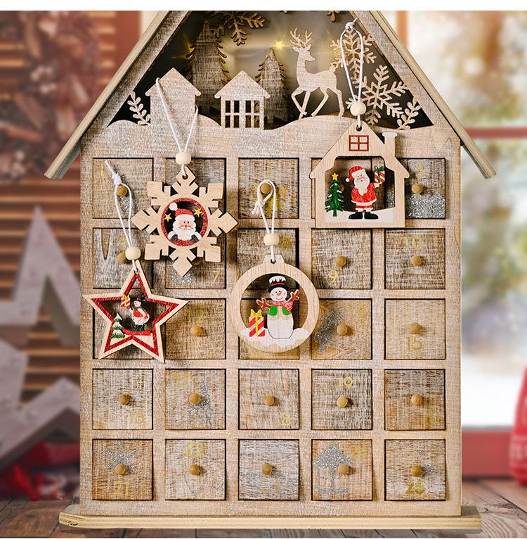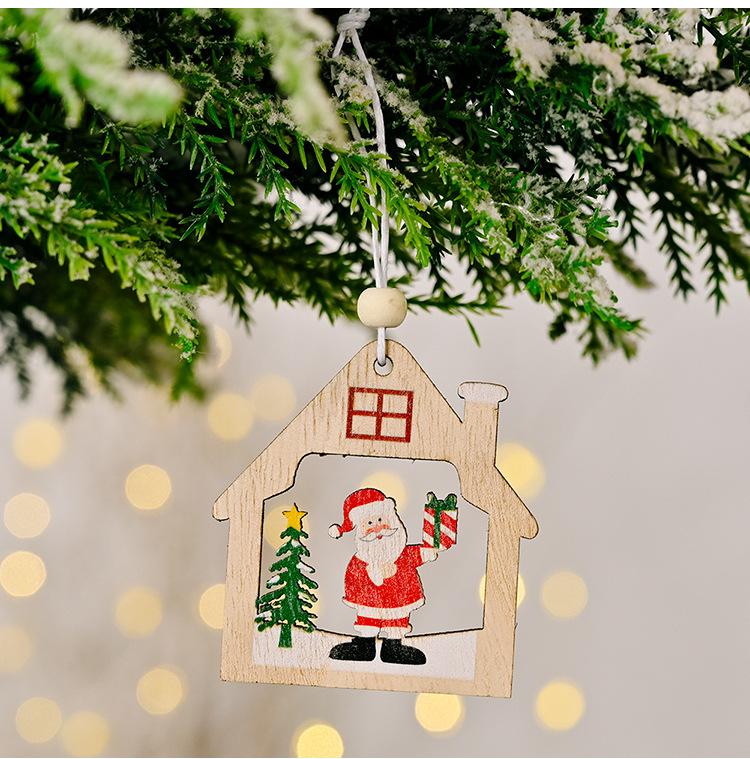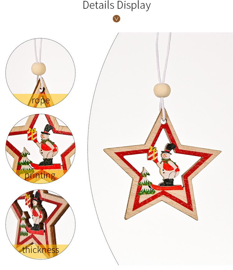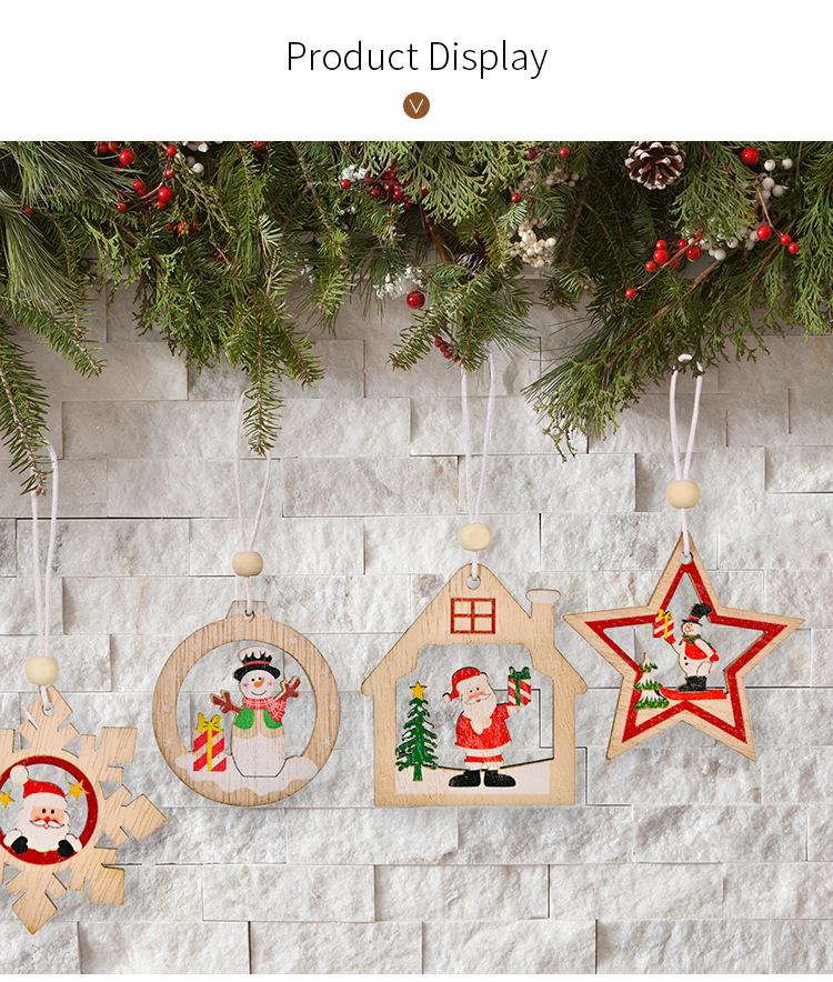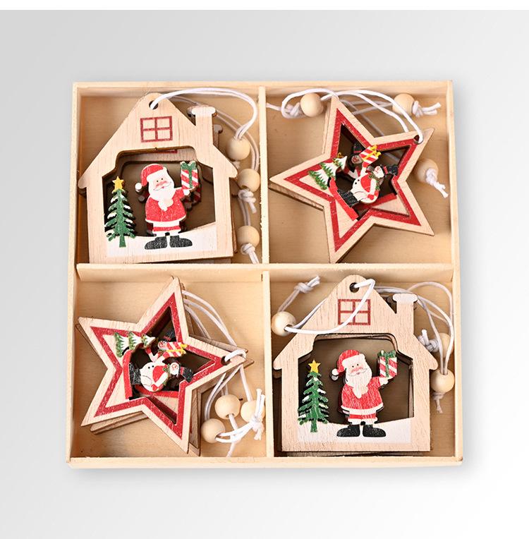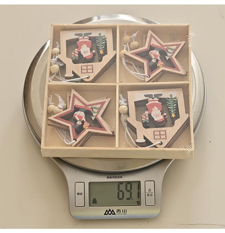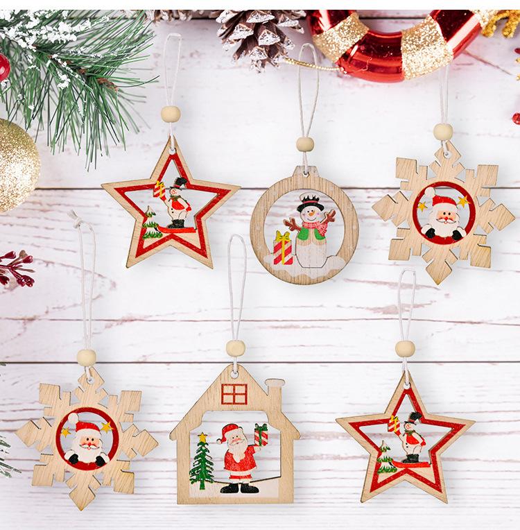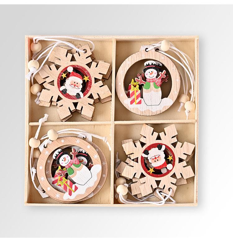 Decoraciones Navideñas Transfronterizas Nuevo Colgante de Madera Impreso Navideño Caja de 12 Colgante de Copo de Nieve de Santa