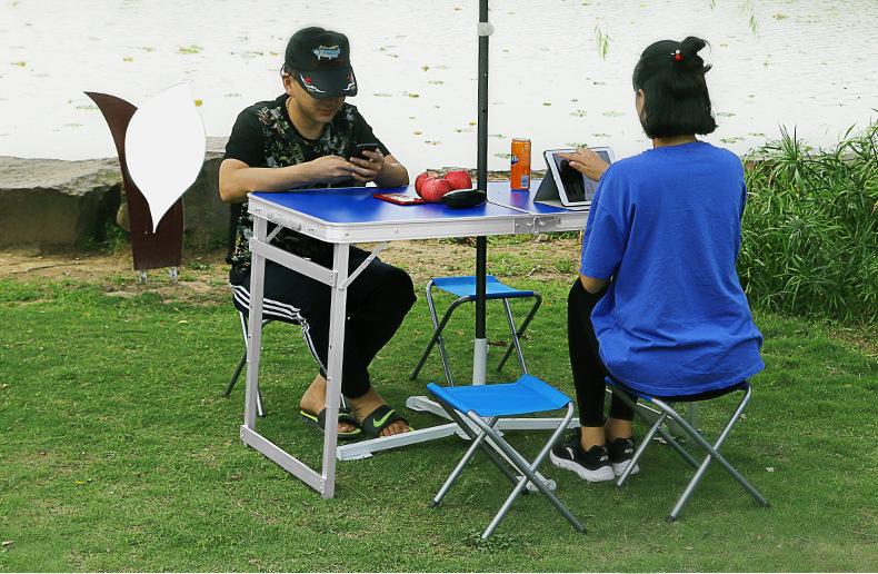 Stable square tube 1.2 meters blue umbrella hole with 2 aluminum stool