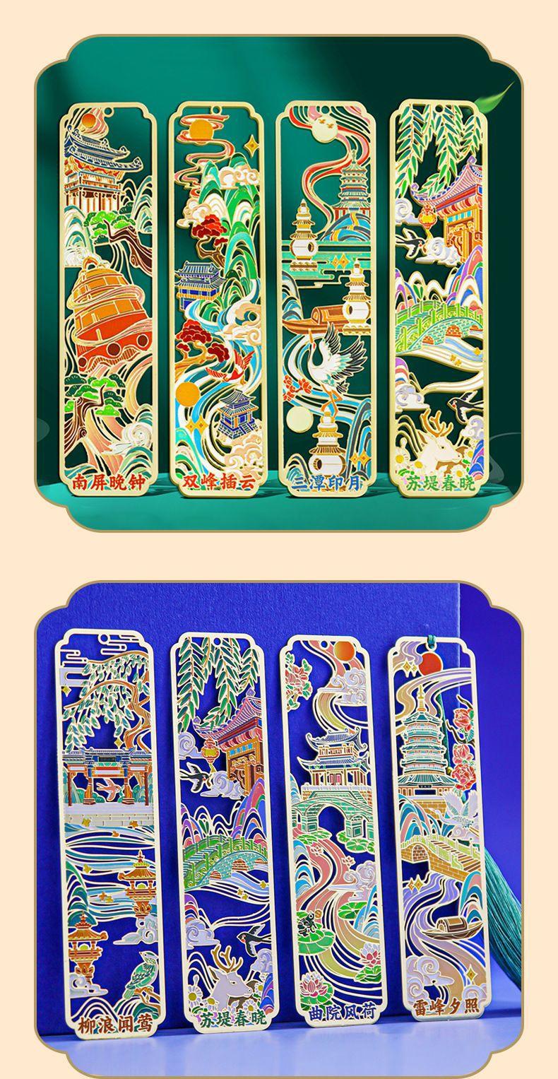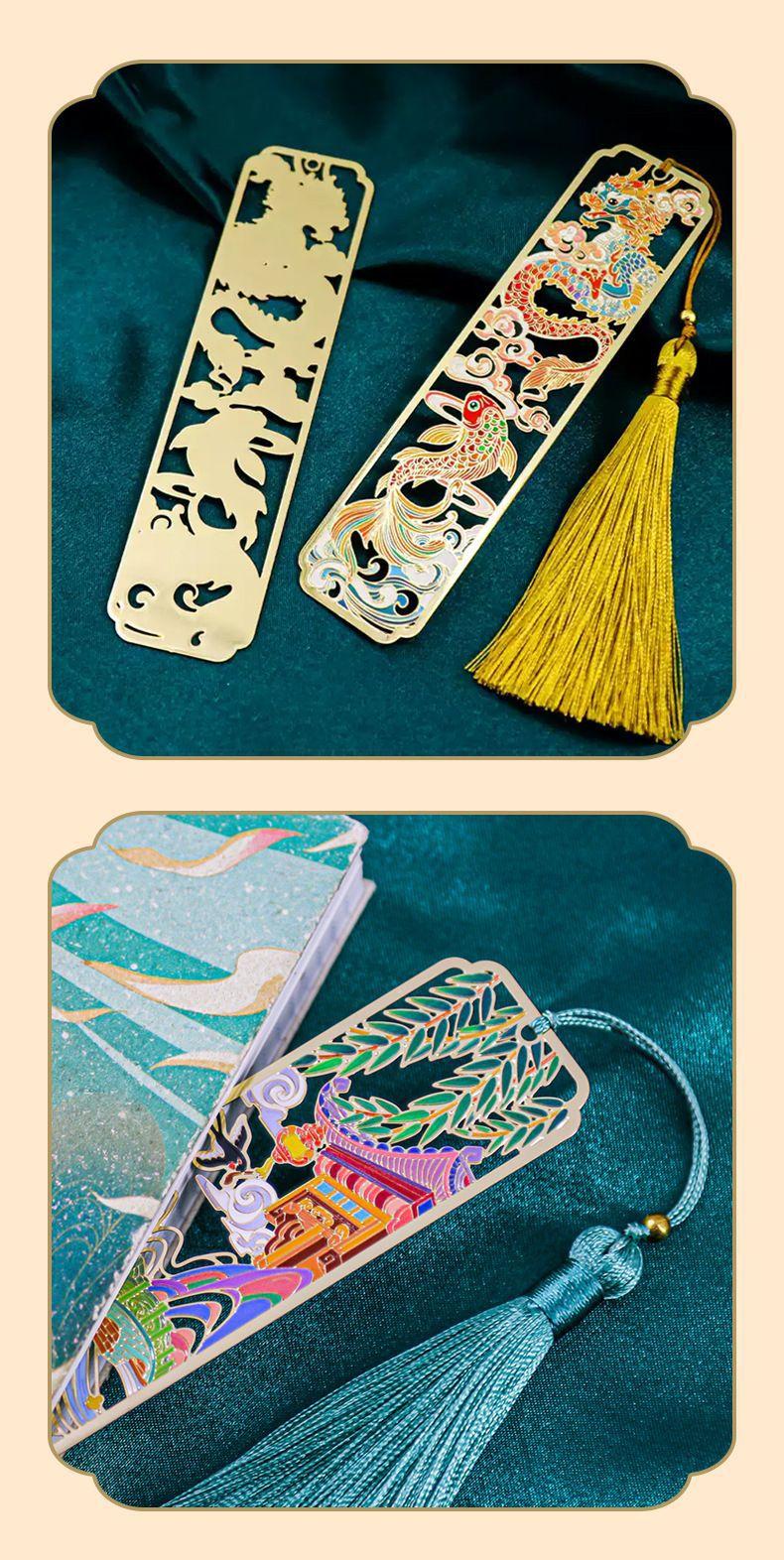 Separadores de Libros de Latón Personalizados, Separadores de Libros de Metal Calado Pintado Culturales y Creativos, Regalos de Graduación con Grabado de Estilo Chino Hechos a Medida, Regalos Creativos