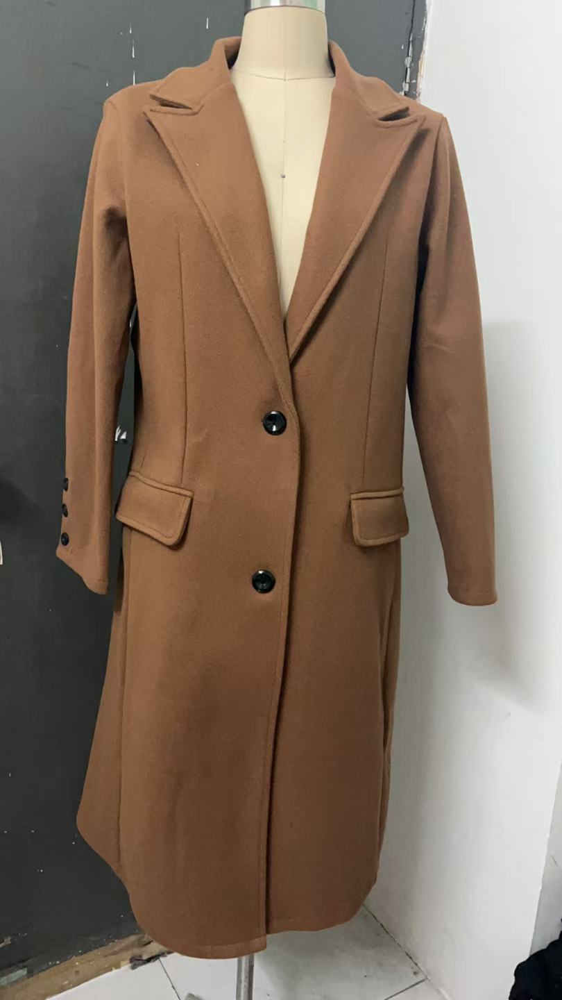 Comercio exterior transfronterizo Ropa de mujer europea y americana estación independiente Amazon 2025 otoño e invierno abrigo de lana sencillo de manga larga con botones de color sólido