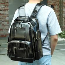 Mochila para Hombre de Cuero Crazy Horse de Gran Capacidad para Laptop, Mochila Escolar de Cuero Genuino Multifuncional Casual para Viaje, Tendencia