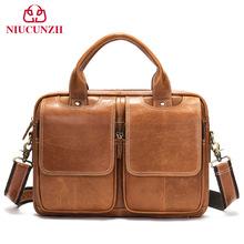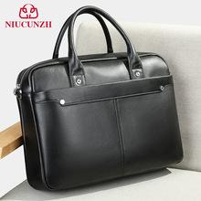 Portafolio de piel de vaca de capa superior transfronterizo, bolso casual de negocios para hombre, bolso bandolera de cuero genuino, estilo horizontal, bolso de mano para computadora negro