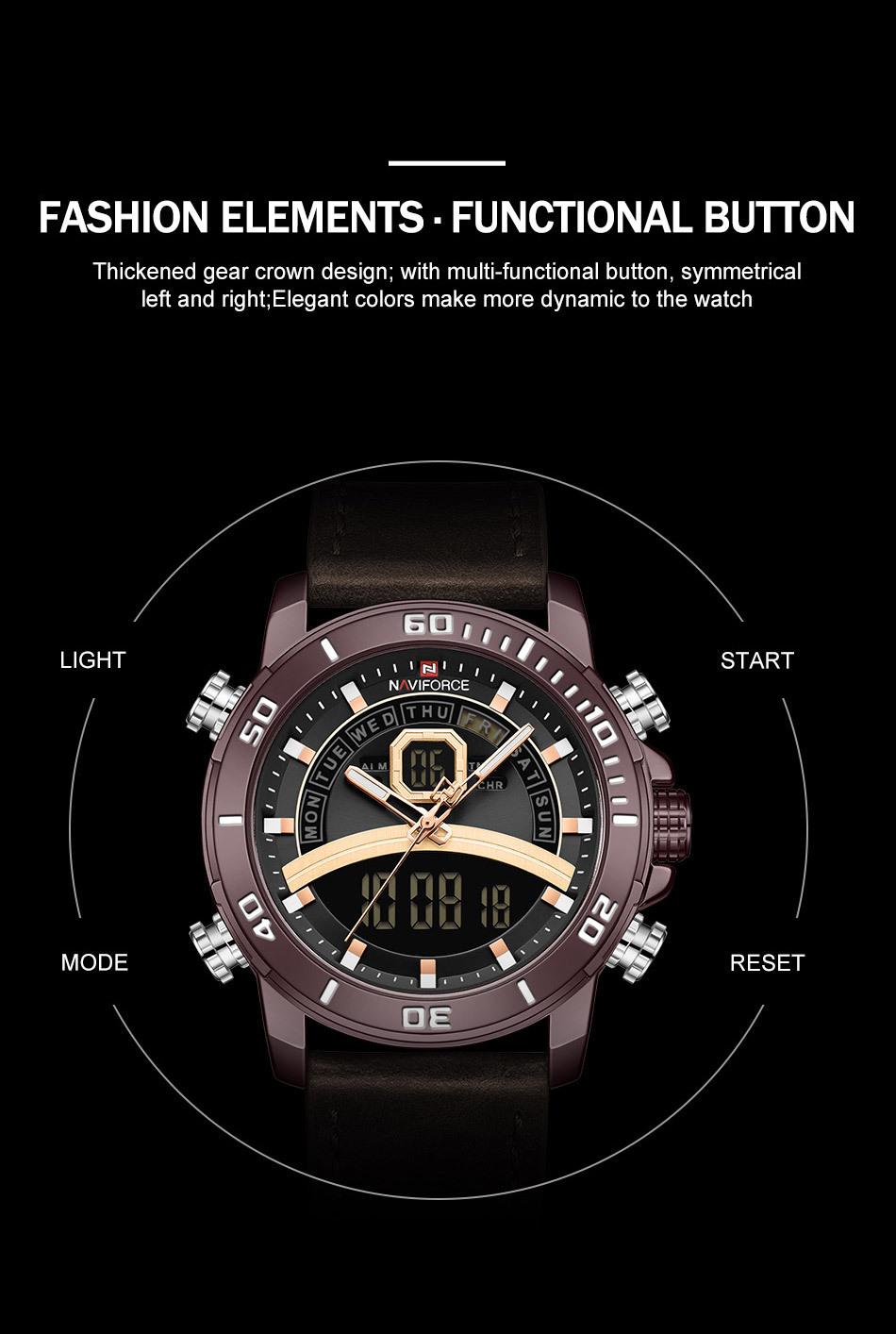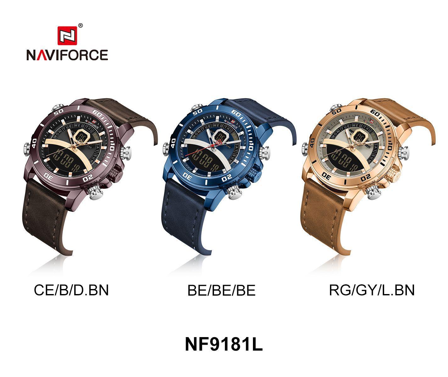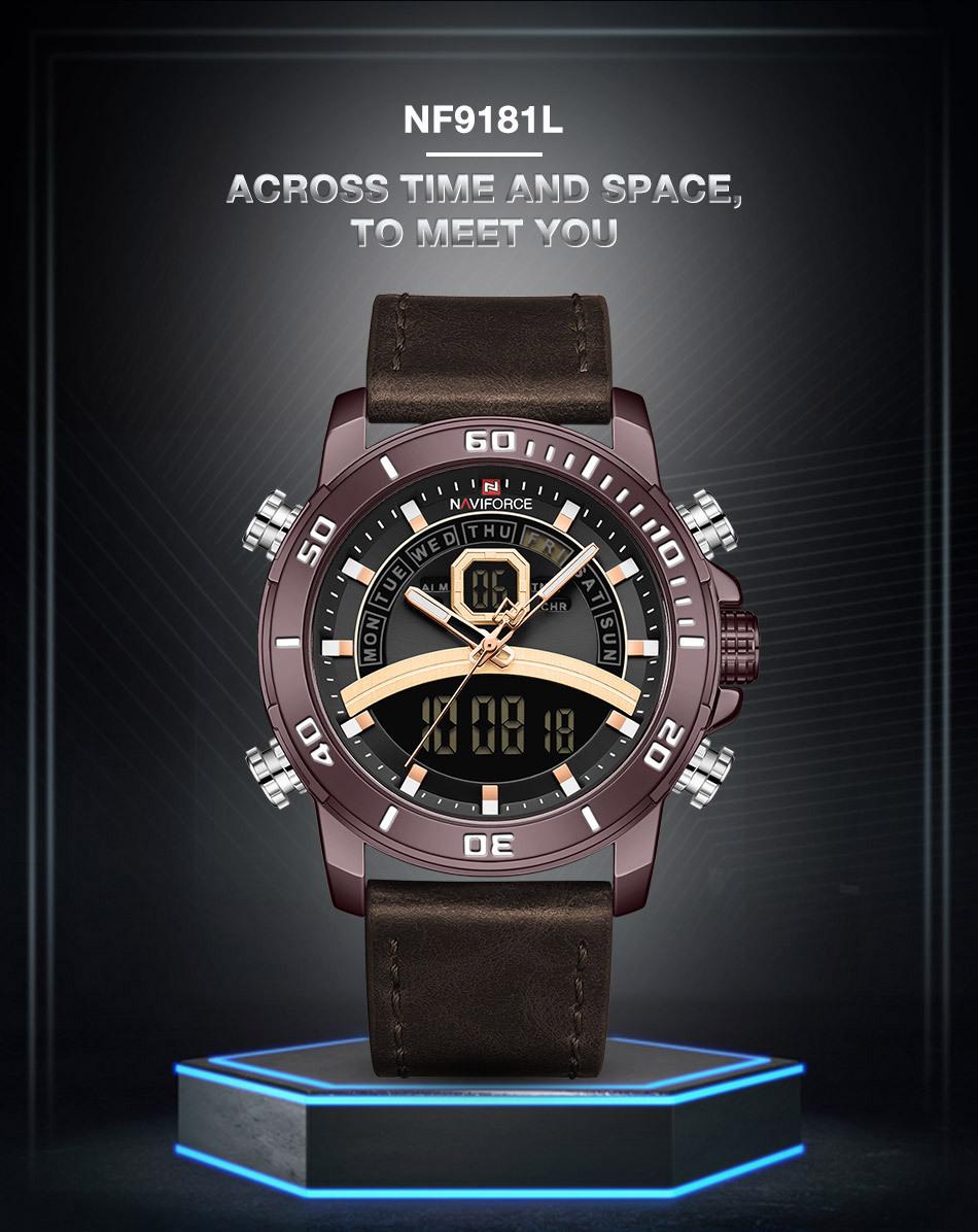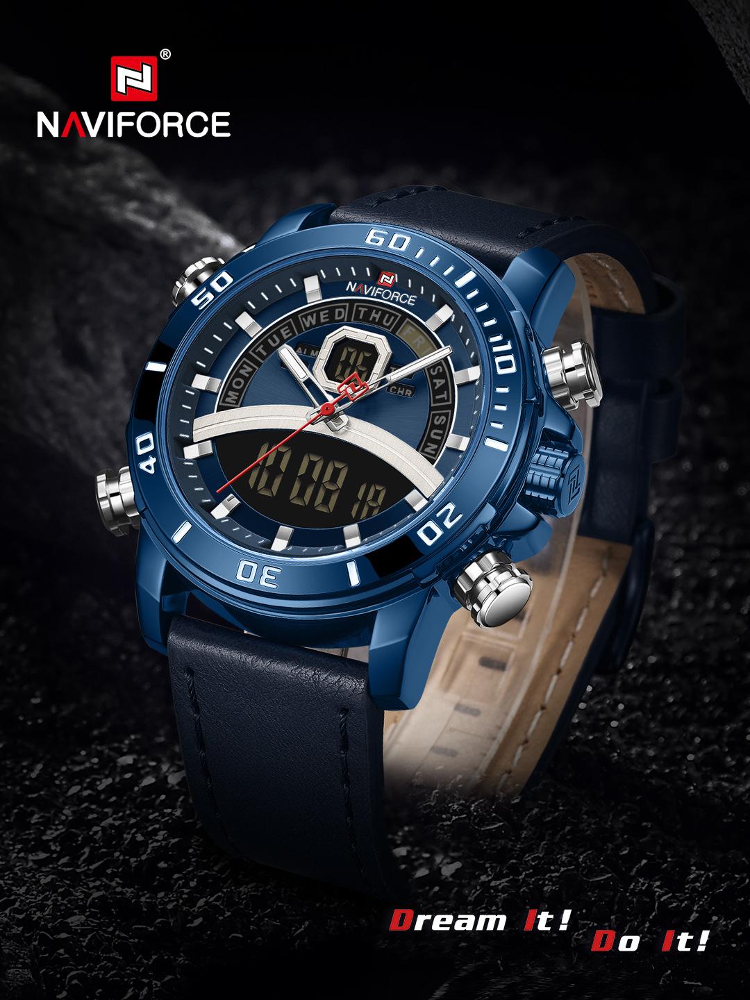 Reloj de Pulsera NAVIFORCE/Lingxiang 9181 Impermeable para Hombre Reloj de Cuarzo Deportivo Doble Movimiento Reloj Electrónico