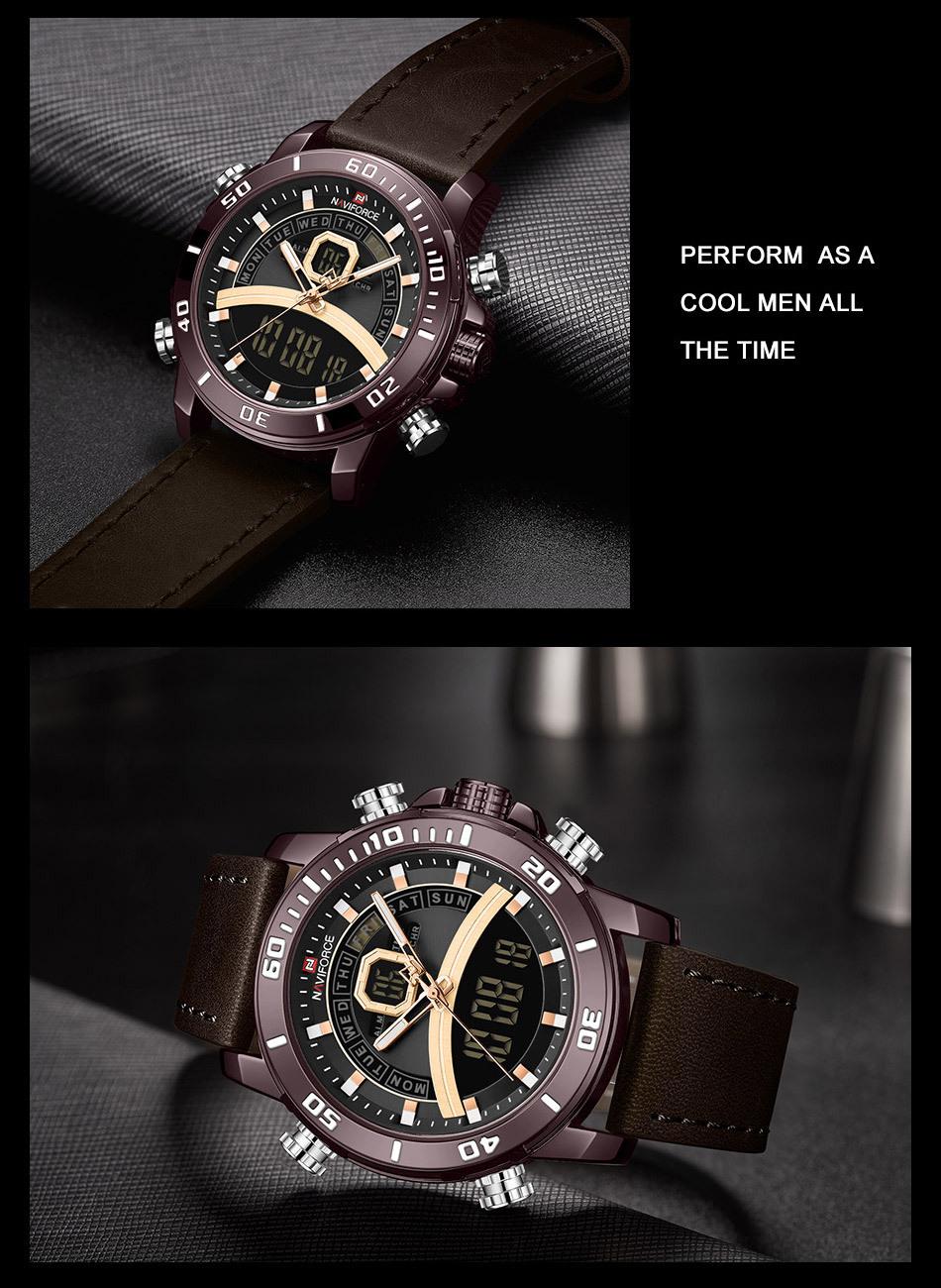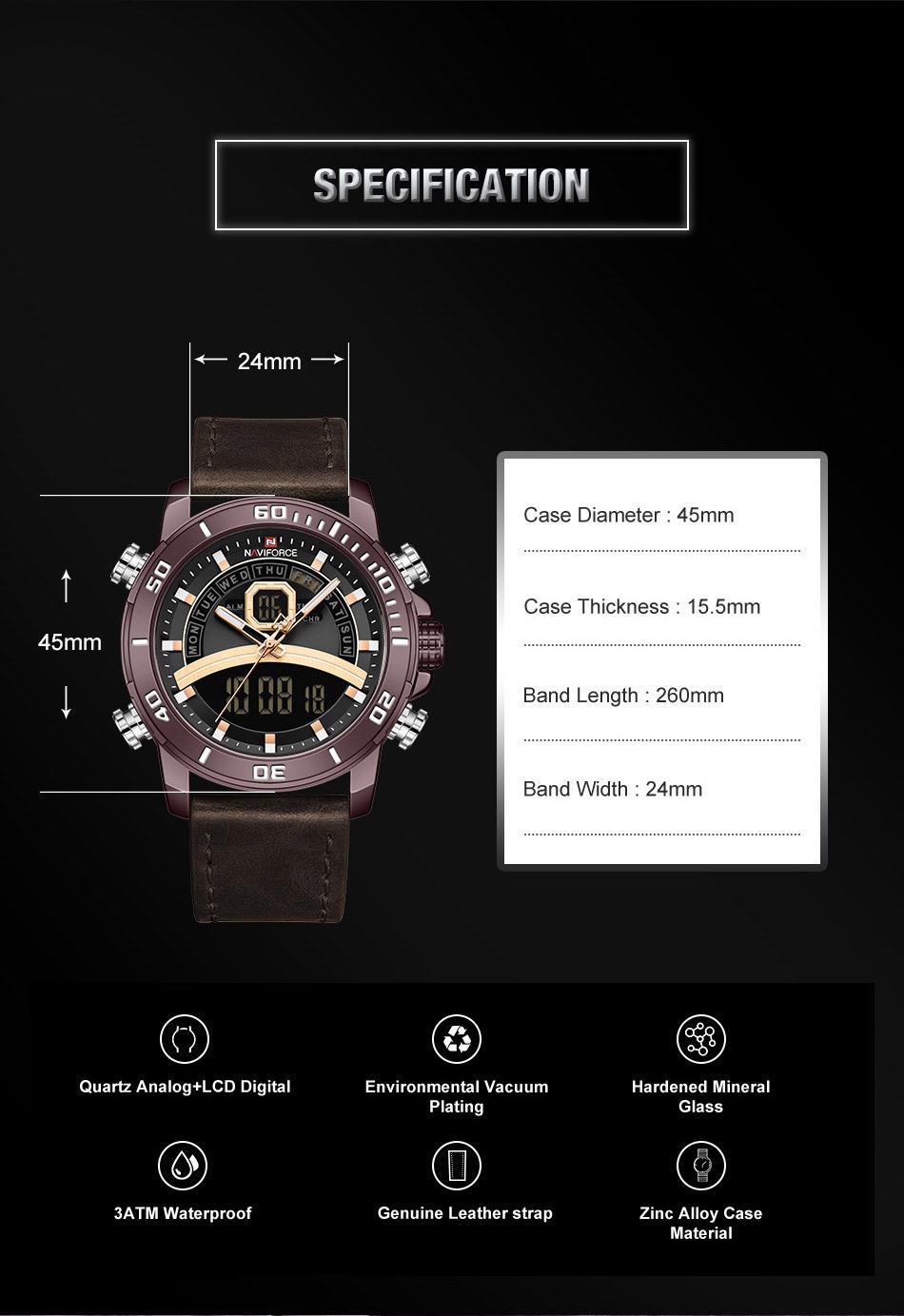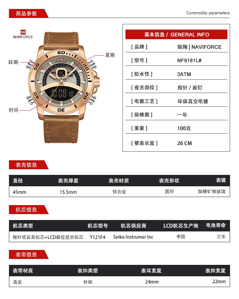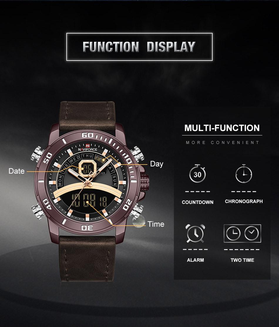 Reloj de Pulsera NAVIFORCE/Lingxiang 9181 Impermeable para Hombre Reloj de Cuarzo Deportivo Doble Movimiento Reloj Electrónico