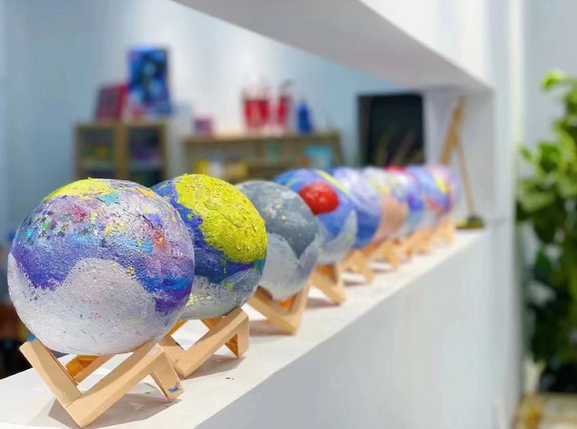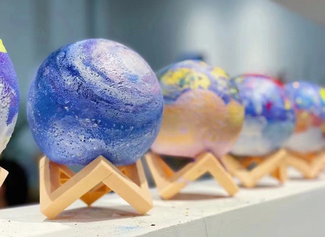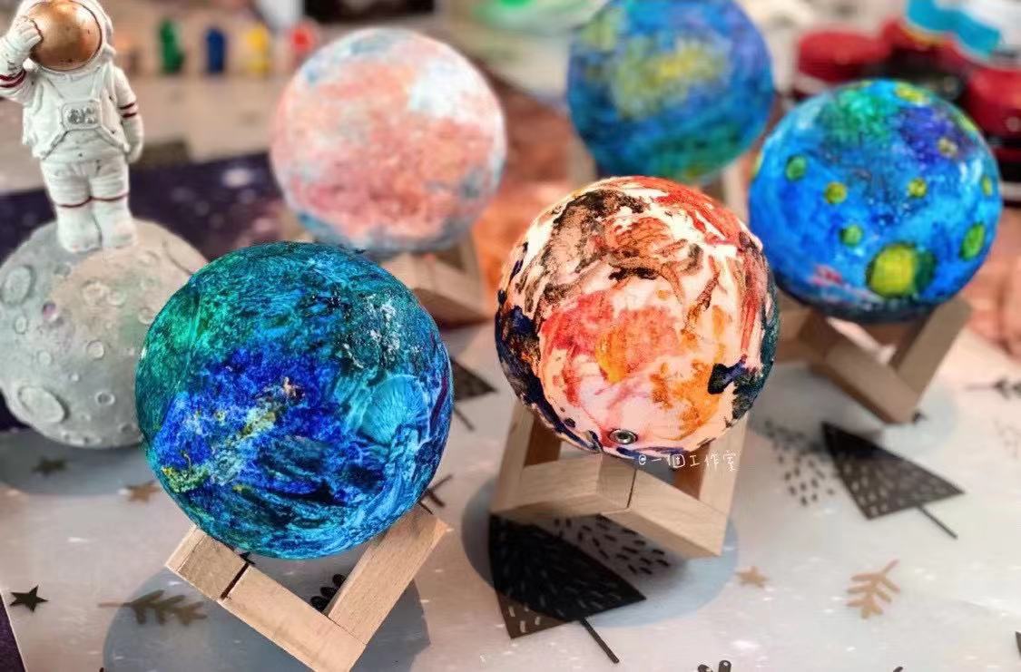Lámpara de planeta DIY pintada a mano creativa luz nocturna de luna pintura artística pintura grafiti producción personalizada hecha a mano