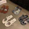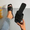2023 Verano Nuevo Europeo y Americano Comercio Exterior Talla Grande Fondo Plano Zapatillas Cuadradas para Mujer Pereza para Exterior Sandalias de Playa de una Palabra