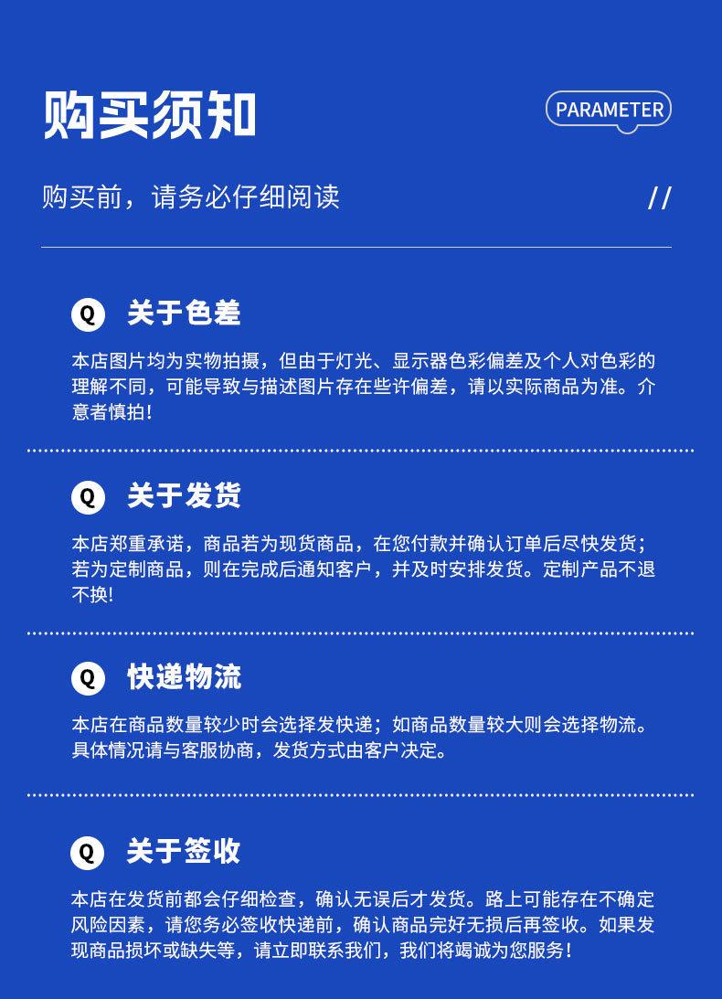 ◆ Estimados amigos, por favor, revisen la mercancía en persona y cuenten la cantidad al recibir el correo electrónico. Luego, firmen tras comprobar que sea correcta. Si observan daños al desembalar, discrepancias en la cantidad, daños, etc., no firmen la recepción y contacten con el vendedor a tiempo. Les daré una respuesta satisfactoria. Si se detectan los problemas mencionados después de firmar la recepción, el transportista no se responsabilizará y el vendedor no tendrá que hacer nada. ¡Recuerden!