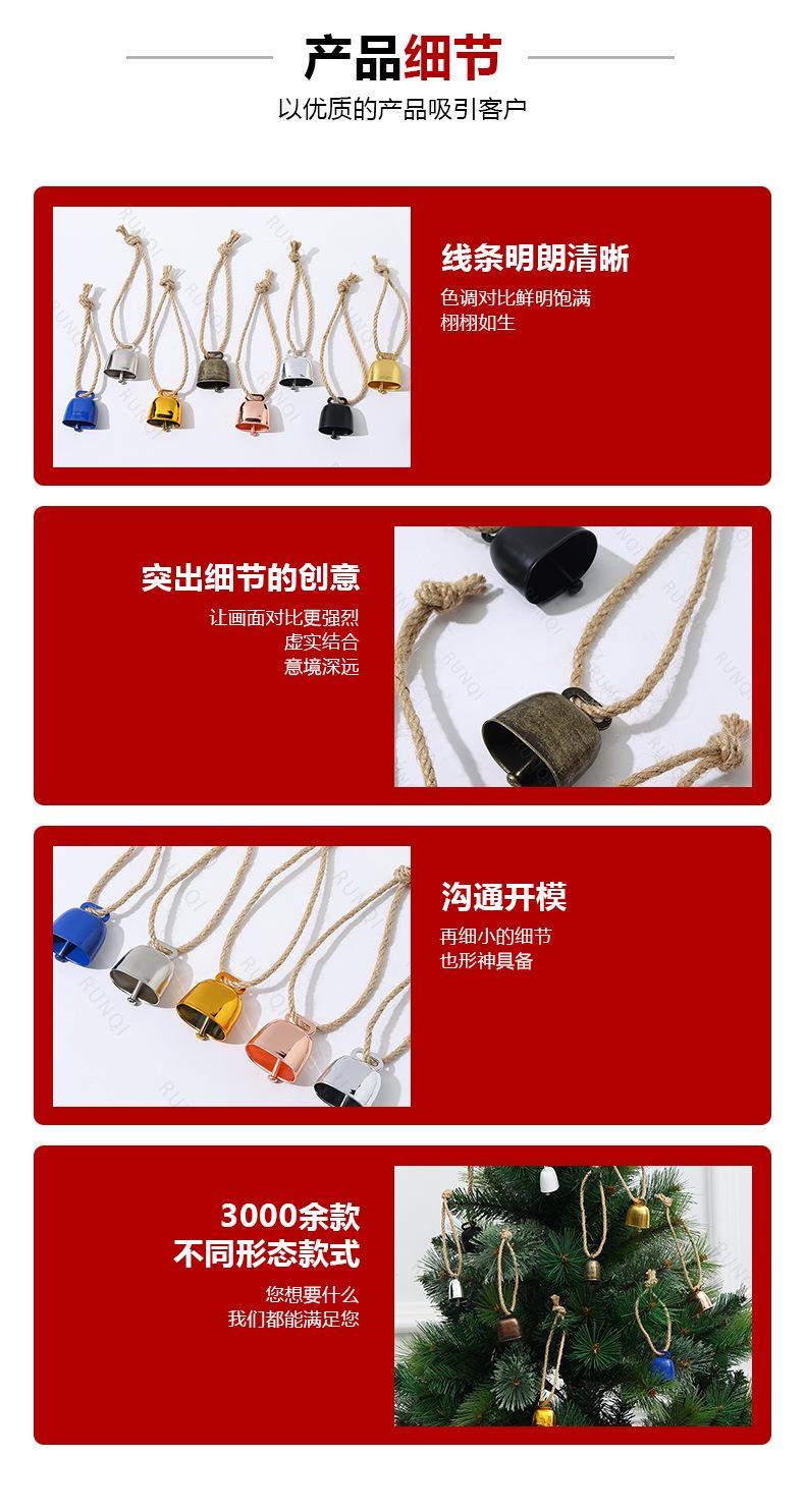 Campana de cuerda de cáñamo de venta caliente transfronteriza, colgante de árbol de Navidad, campana de metal retro, sonido brillante y nítido, campana de hierro retro