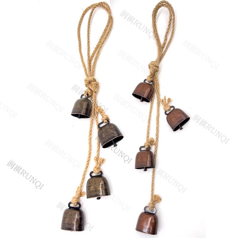 Campana colgante de cuerda de cáñamo de fábrica de gran venta campana de vaca de metal retro campana de viento campana de Navidad campana para colgar en la pared campana de hierro al por mayor