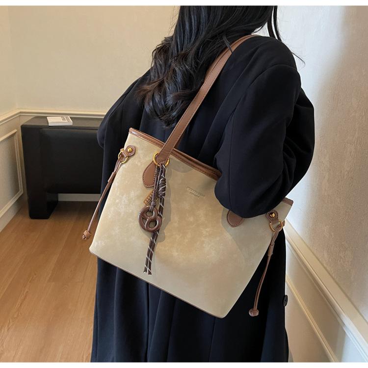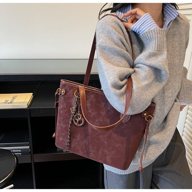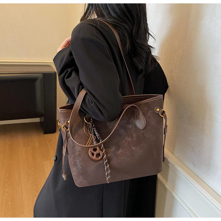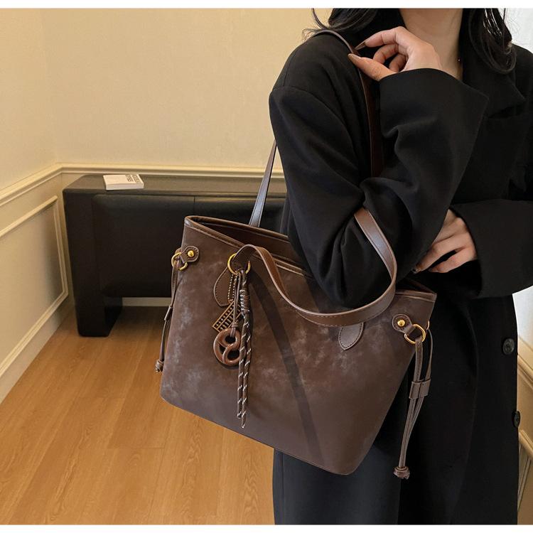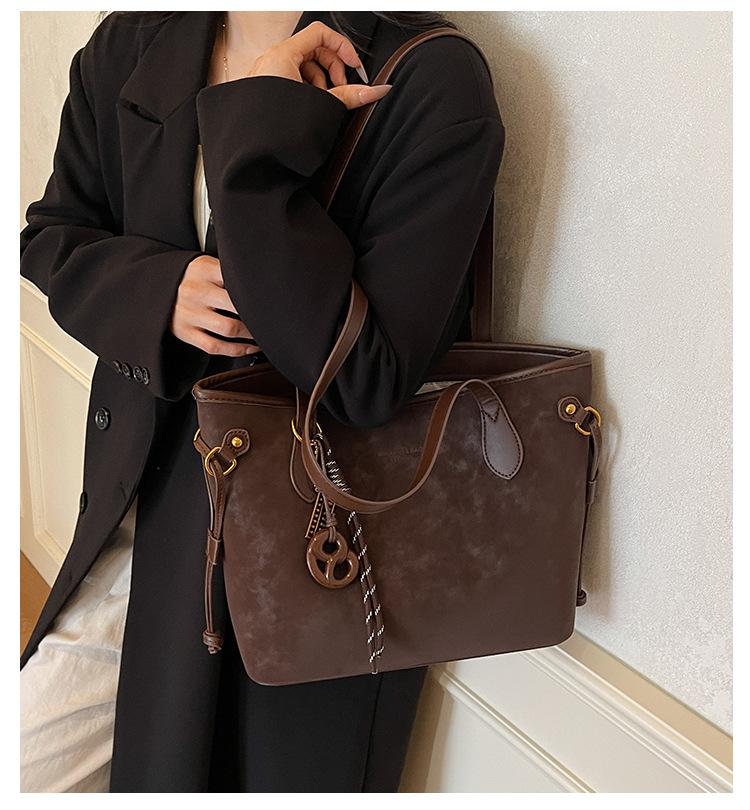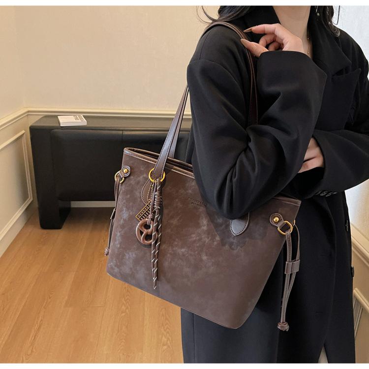Bolso tote retro cruzado para axila para mujer 2025 otoño e invierno nuevo versátil de gran capacidad para mujer bolso de hombro esmerilado