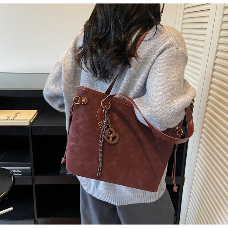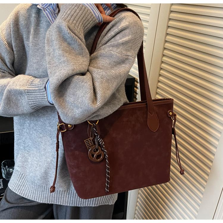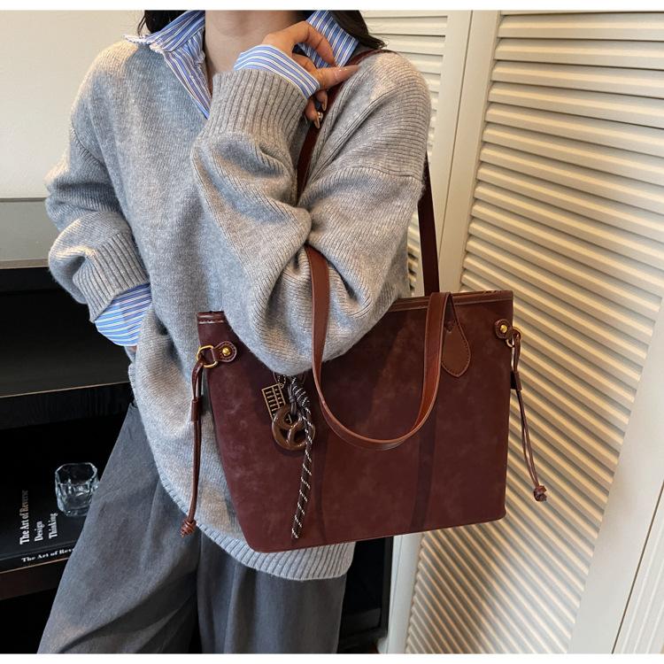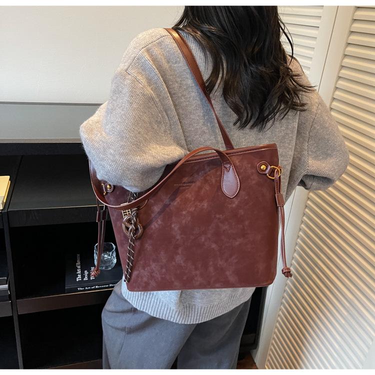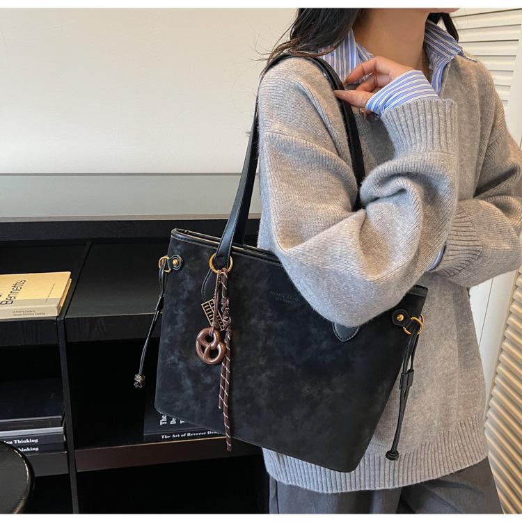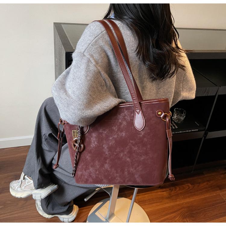Bolso tote retro cruzado para axila para mujer 2025 otoño e invierno nuevo versátil de gran capacidad para mujer bolso de hombro esmerilado