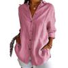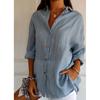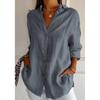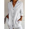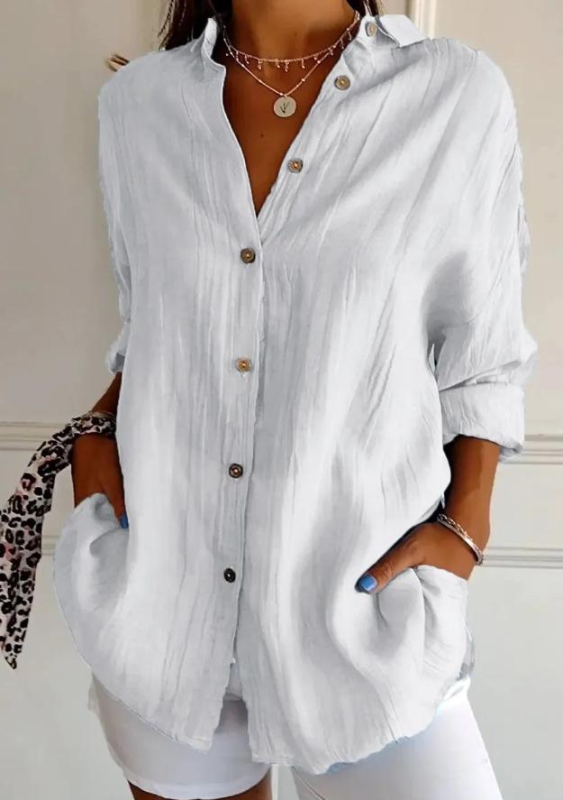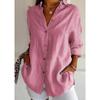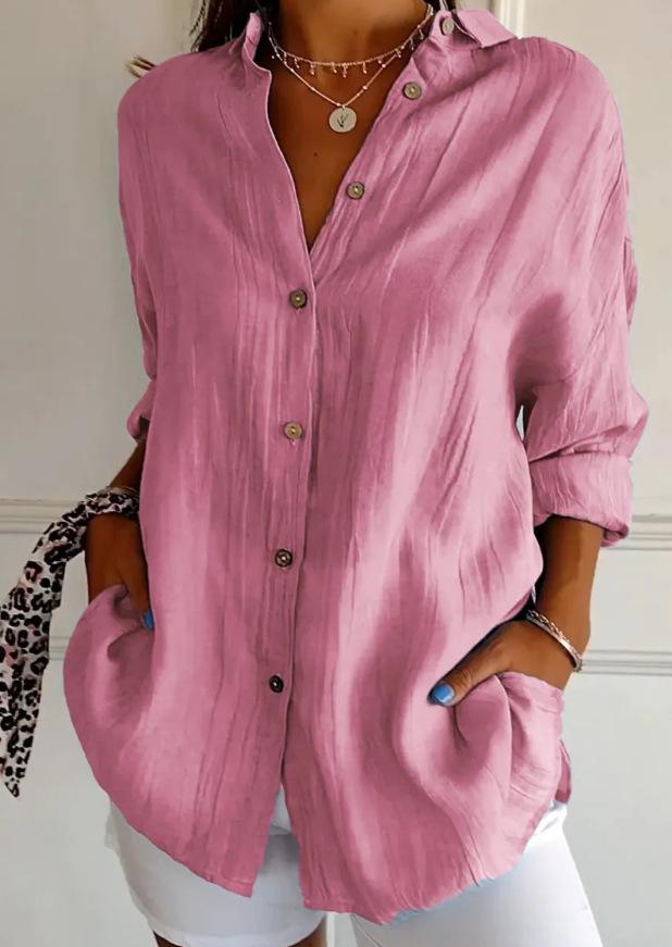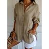 2025 nueva camisa de solapa plisada de un solo botón estación independiente más vendida para mujer color sólido europea y americana top de manga enrollable