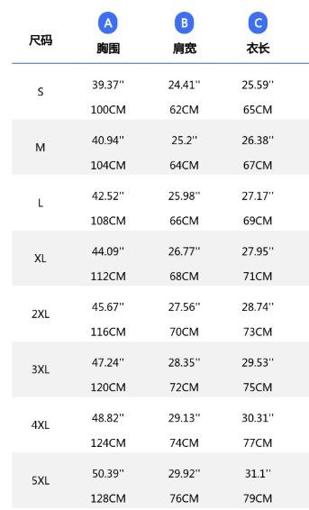 S, M, L, XL, 2XL, 3XL, 4XL, 5XL