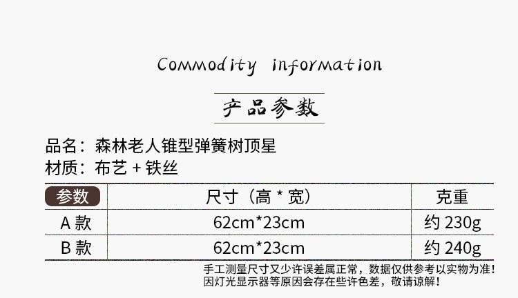 Zicheng Navidad Nuevos Suministros Decorativos Bosque Anciano Cono Árbol de Primavera Estrella para la Punta del Árbol Creativa Muñeca sin Rostro Estrella para la Punta del Árbol