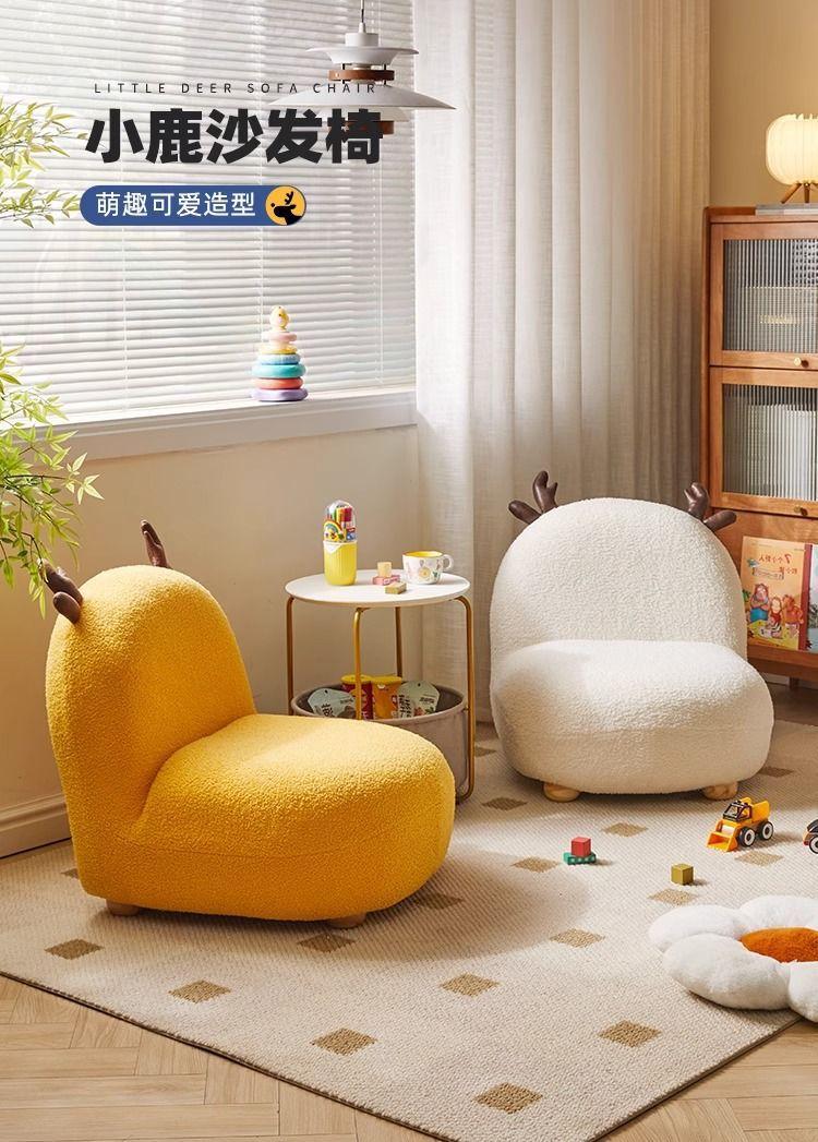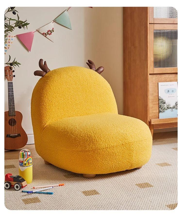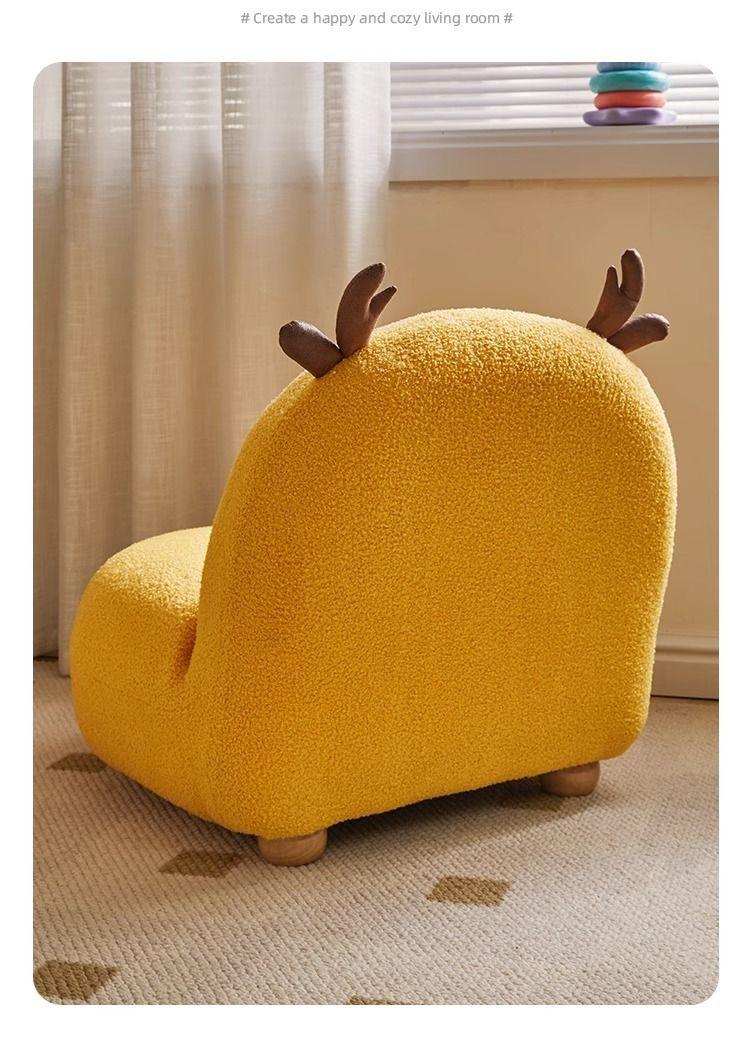 Sofá Infantil de Madera Maciza, Ciervo Perezoso de Dibujos Animados Silla Individual, Sofá Pequeño para Bebé para Leer, Lindo Sofá Taburete con Respaldo