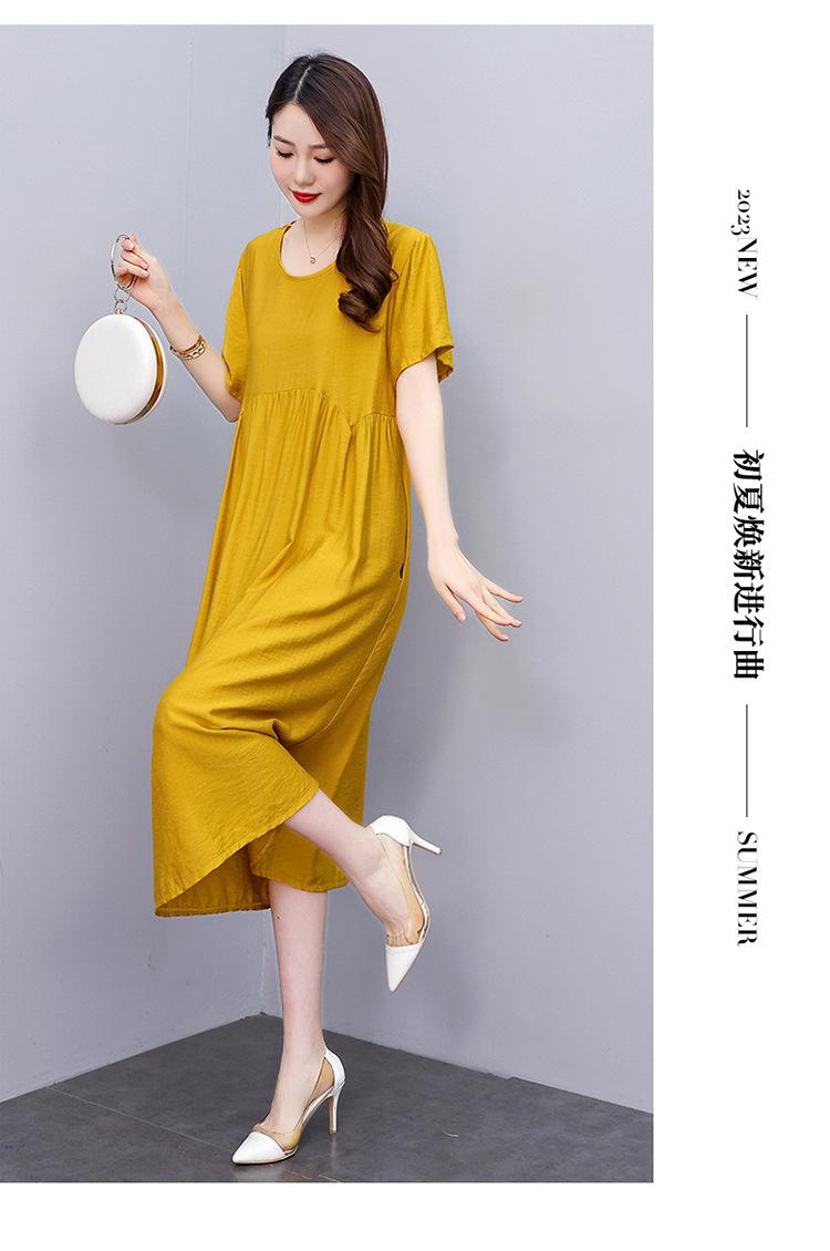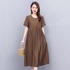 Vestido holgado de algodón y lino de talla grande para mujer, novedad de 2025, vestido playero elegante y adelgazante que cubre la nariz y combina con todo para mujer.