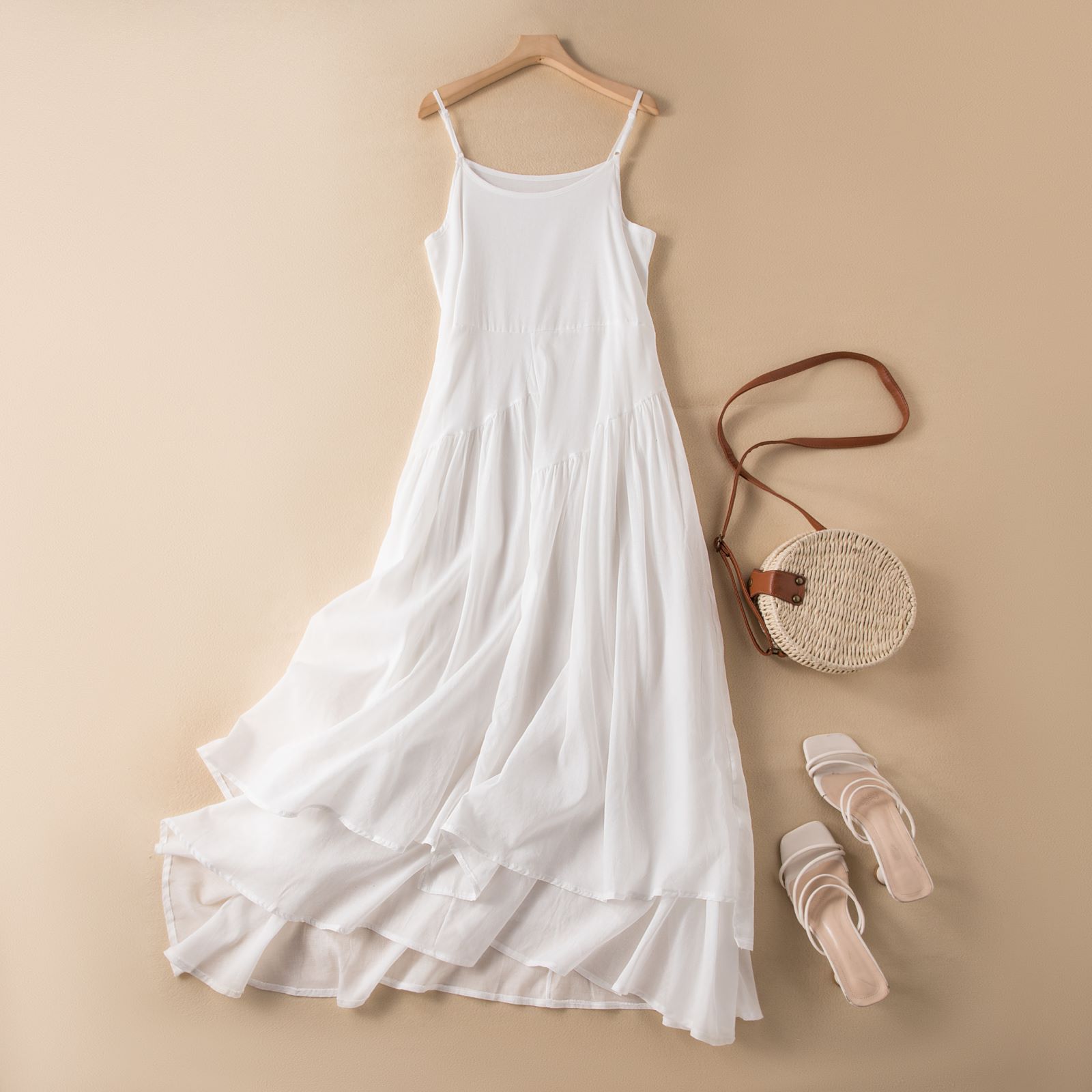 Vestido de hadas fluido largo con dobladillo irregular, tirantes espagueti, vestido de playa, verano, adelgazante, camiseta sin mangas, vestido básico, vestido blanco