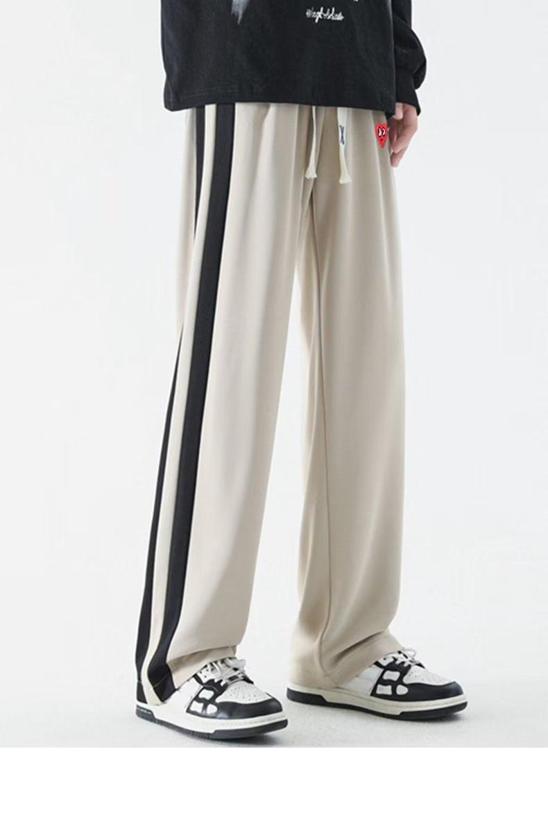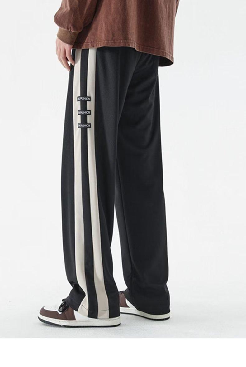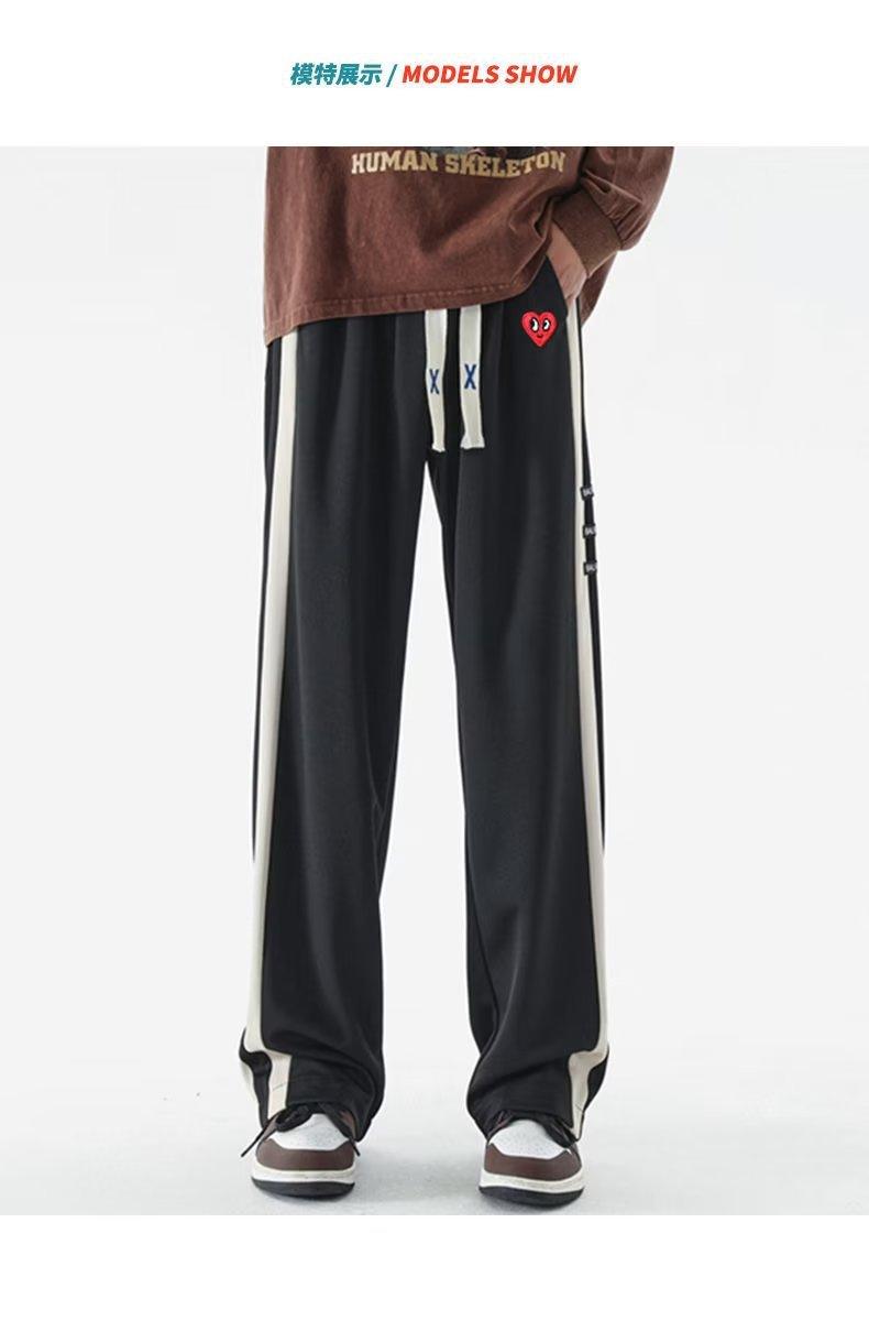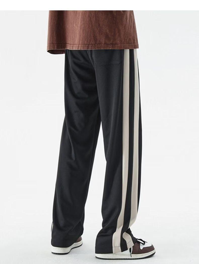 2023 Nuevo Pantalón Deportivo Retro de Calle con Raya Lateral en Contraste de Color para Hombre, Marca de Moda, Holgado, de Pierna Ancha, Casual, Combinable con Todo