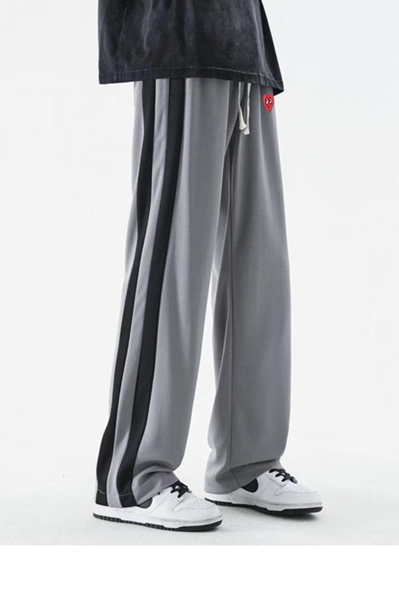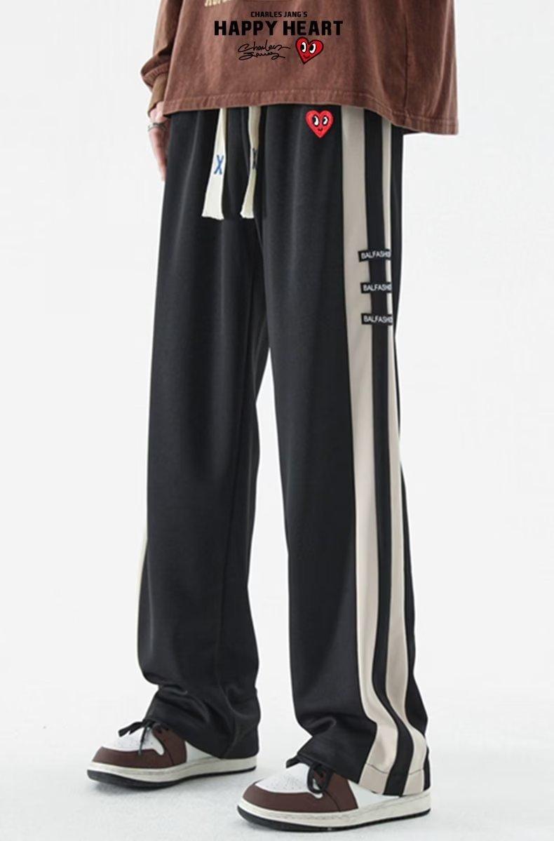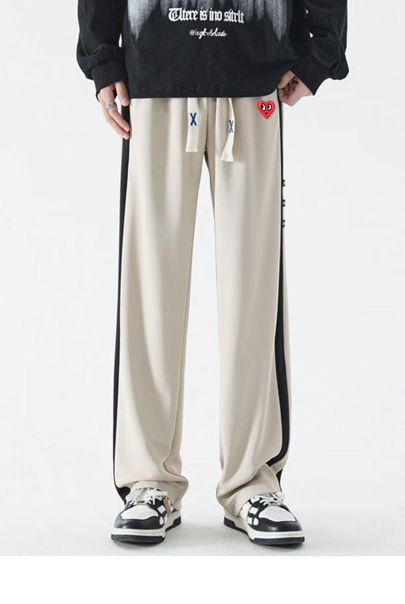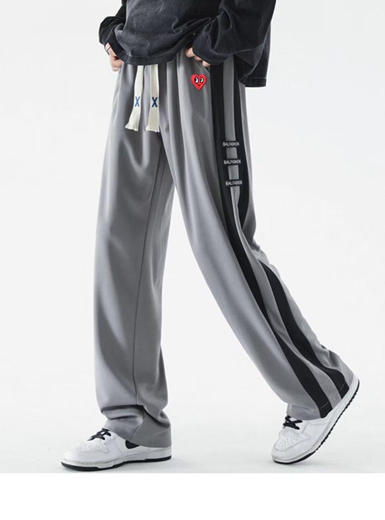 2023 Nuevo Pantalón Deportivo Retro de Calle con Raya Lateral en Contraste de Color para Hombre, Marca de Moda, Holgado, de Pierna Ancha, Casual, Combinable con Todo