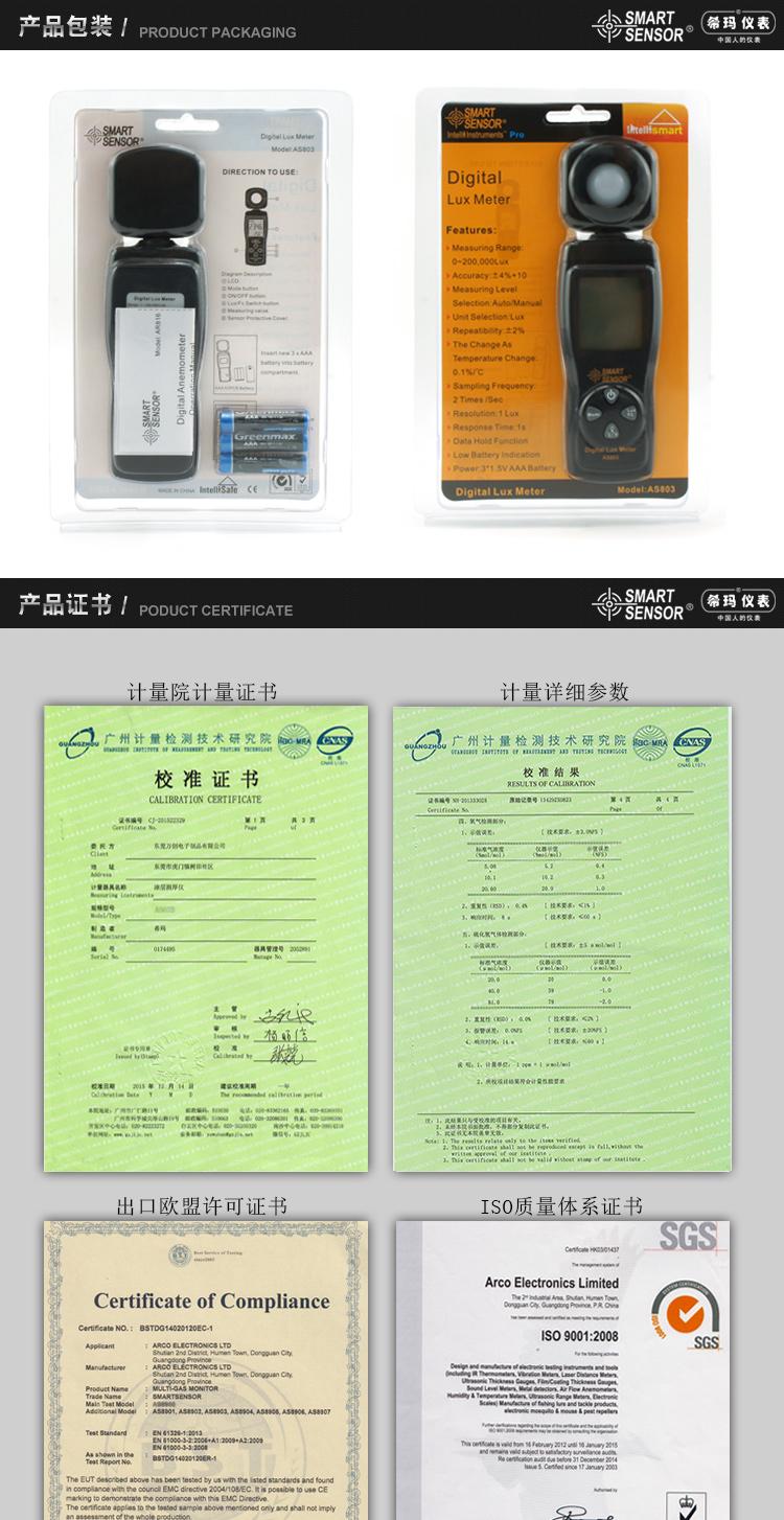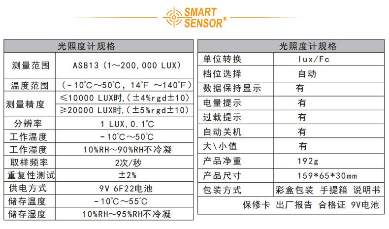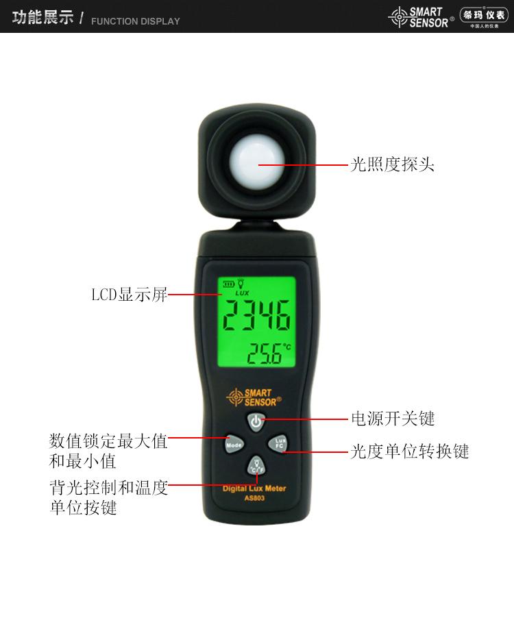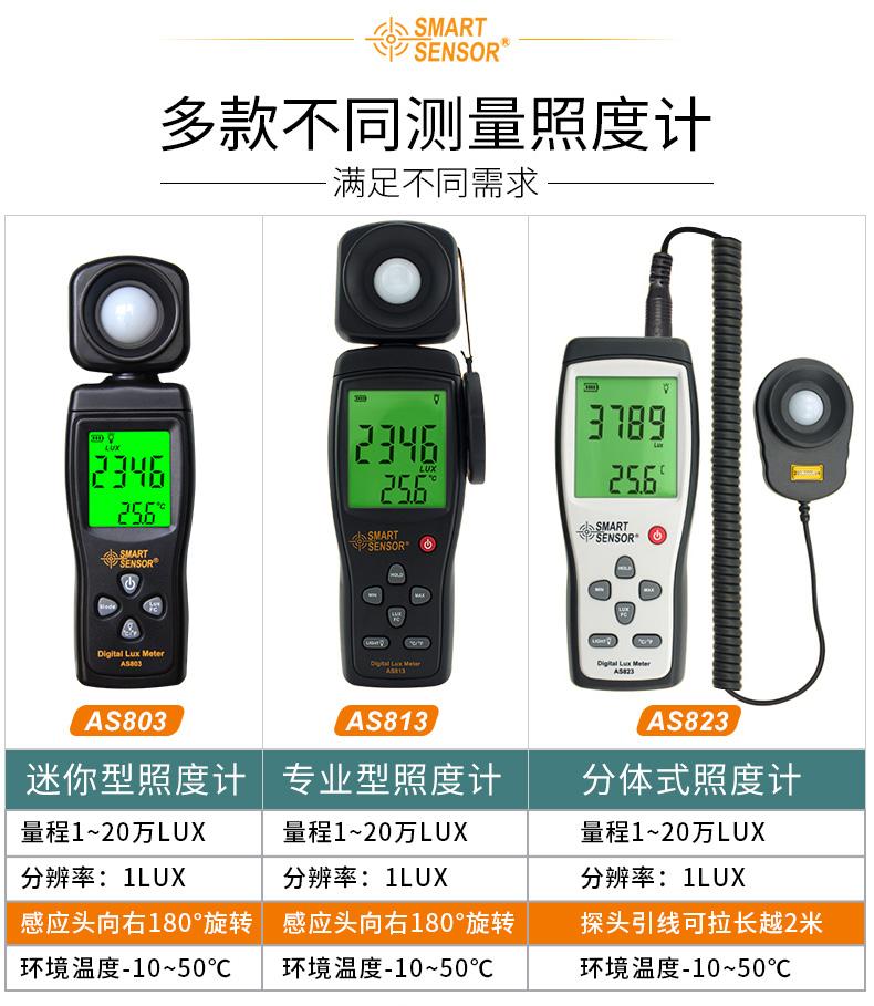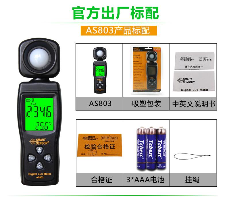 AS803 lux meter original standard, AS813 luxmeter original standard configuration, AS803 illuminometer origina...