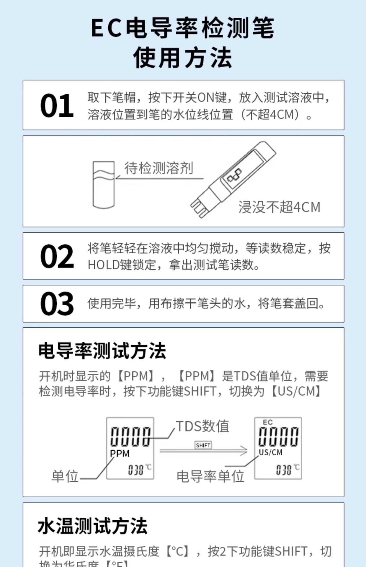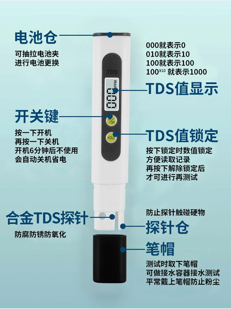 Pluma medidora de calidad del agua tds multifuncional de alta precisión probador de calidad del agua purificador de agua doméstico pluma dts instrumento de prueba de agua del grifo