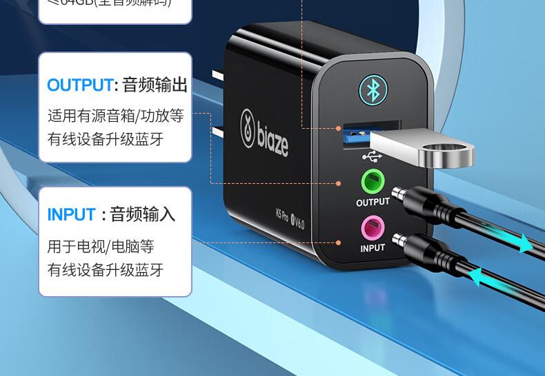 Biyaz Receptor Bluetooth 6.0 Adaptador USB Memoria Flash Altavoz Sonido aux Conectar a Amplificador Audífonos Módulo Transmisor de Audio
