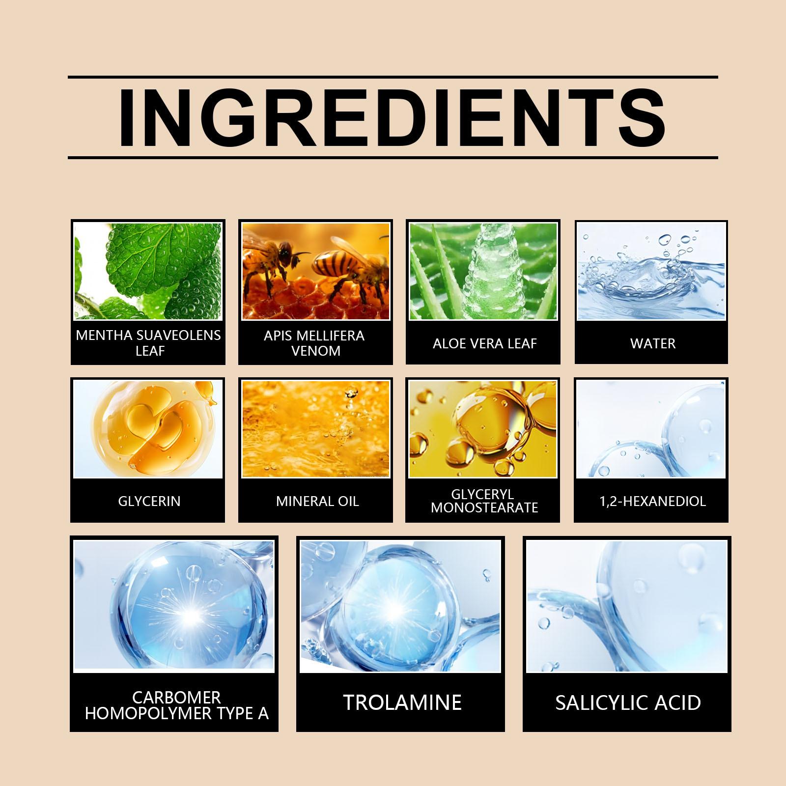 Crema para el Cuidado de la Piel con Veneno de Abeja Houkea Fórmula Herbal Limpiadora Espalda Cuerpo Piel Suave Rejuvenecimiento Ungüento de Uso Externo