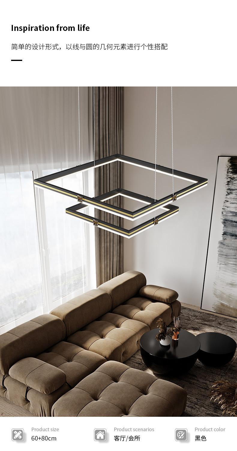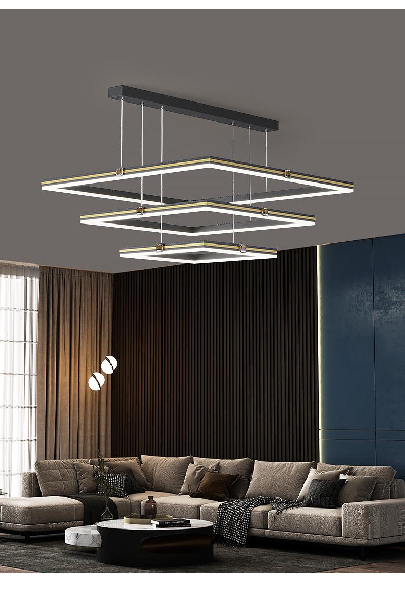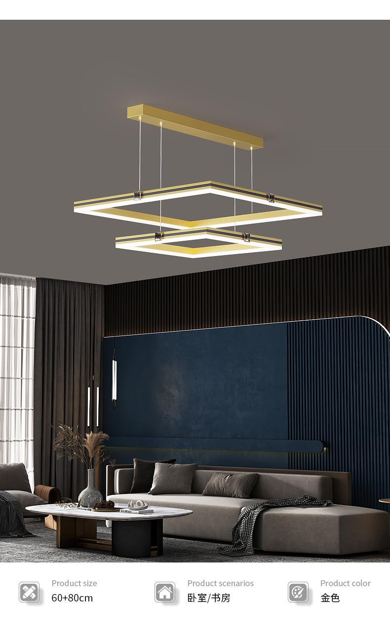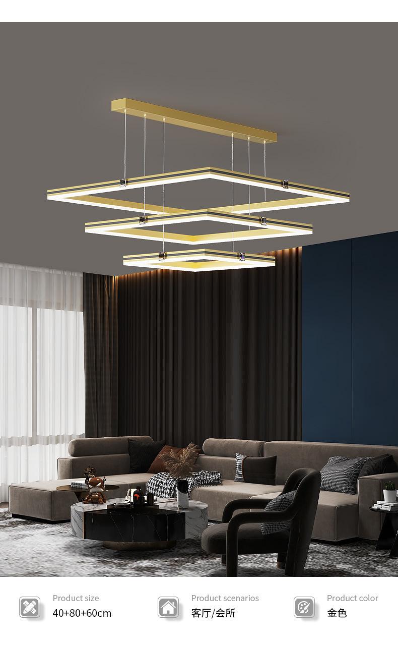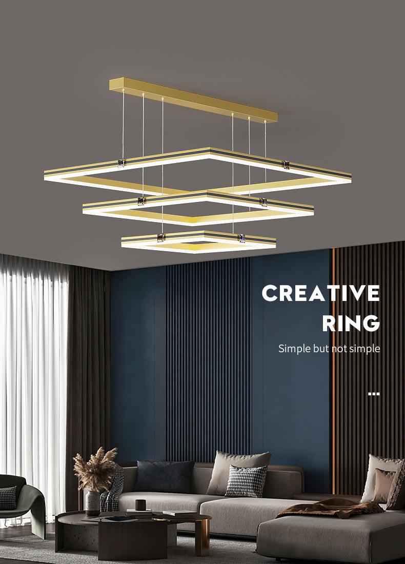 Lámpara de Sala de Estar Araña Moderna Simple Cuadrada Nórdica Lámpara de Comedor Escalera Dúplex Luz de Anillo Celebridad Cibernética Iluminación de Lujo para Hall