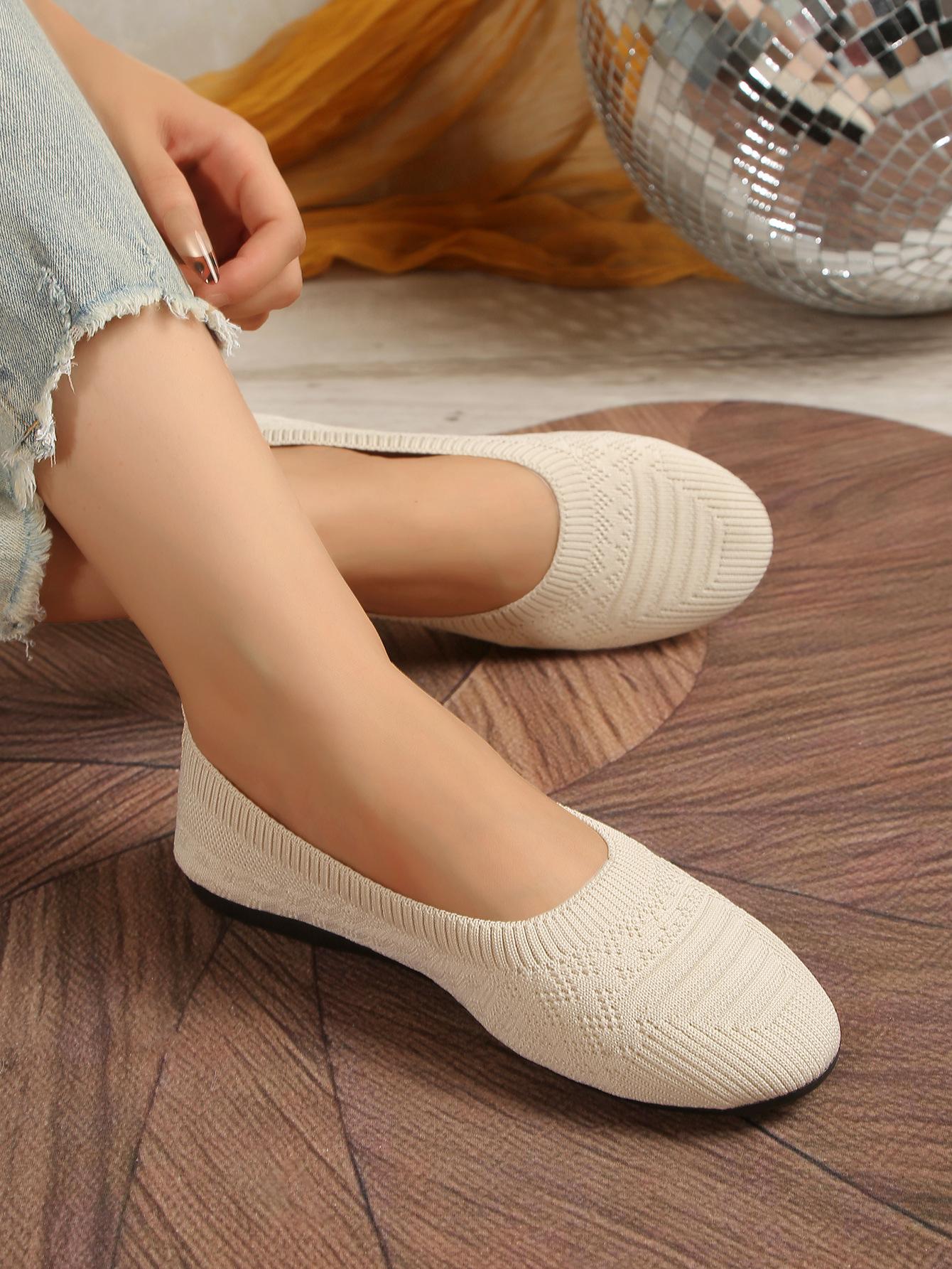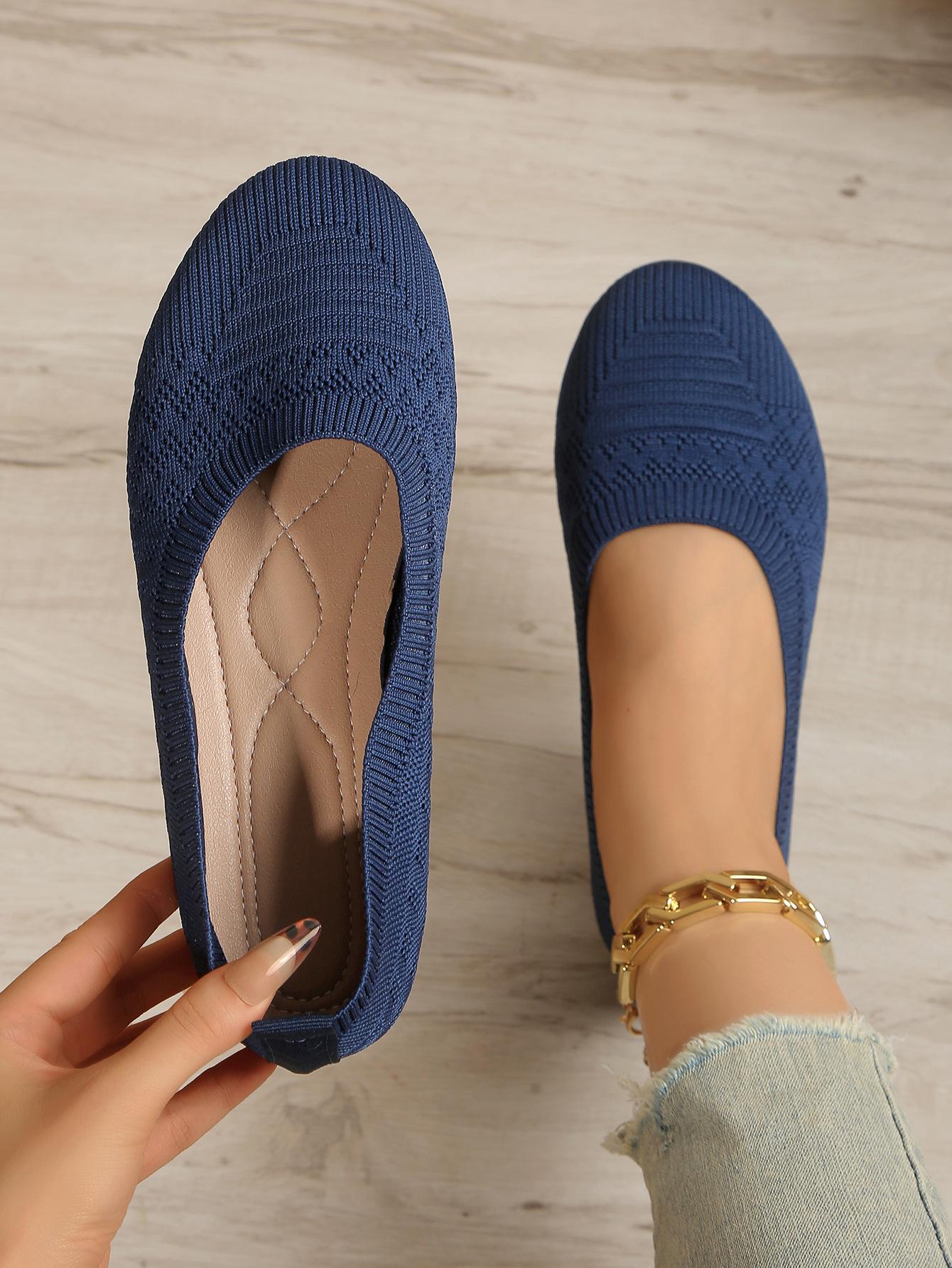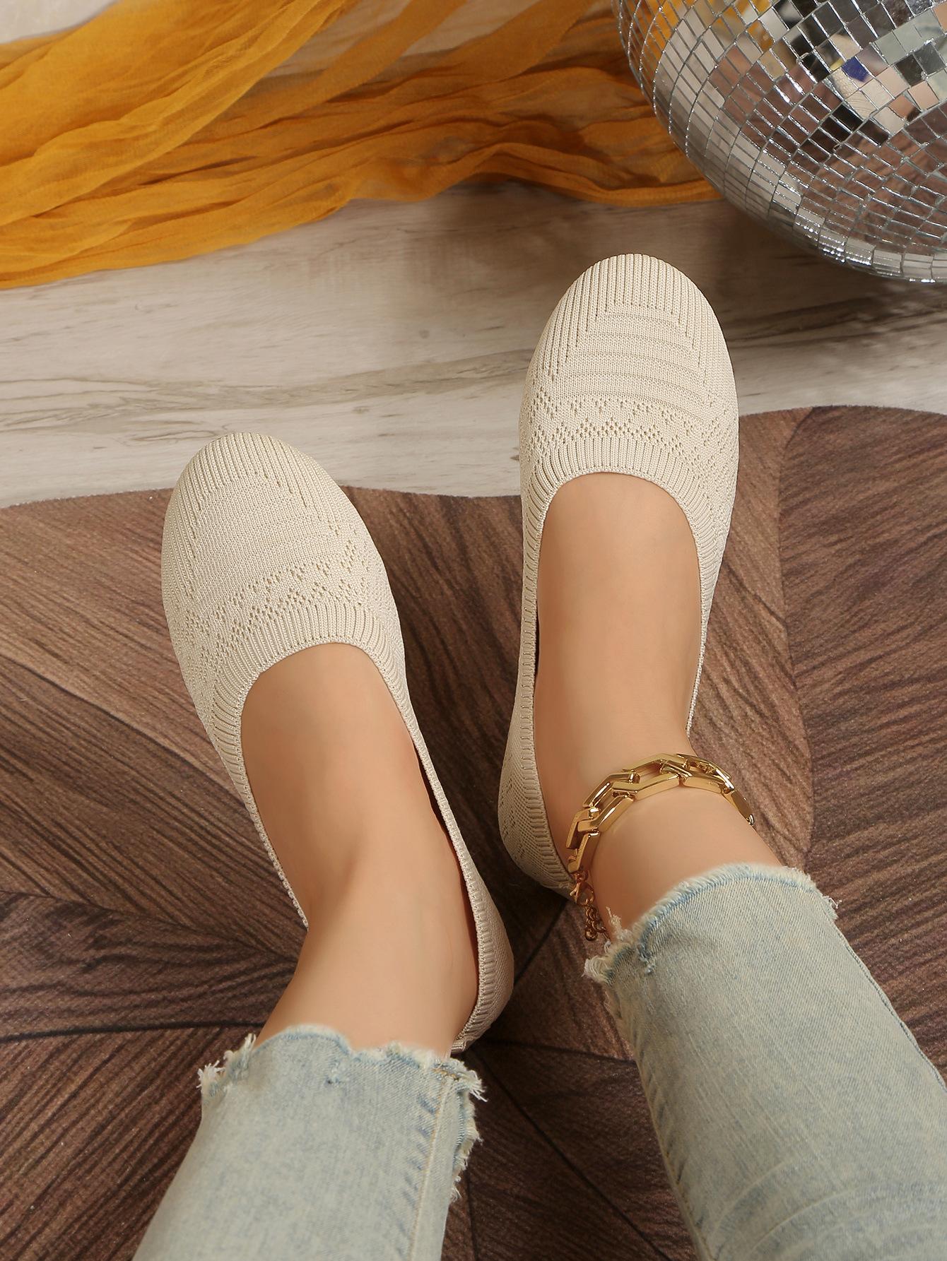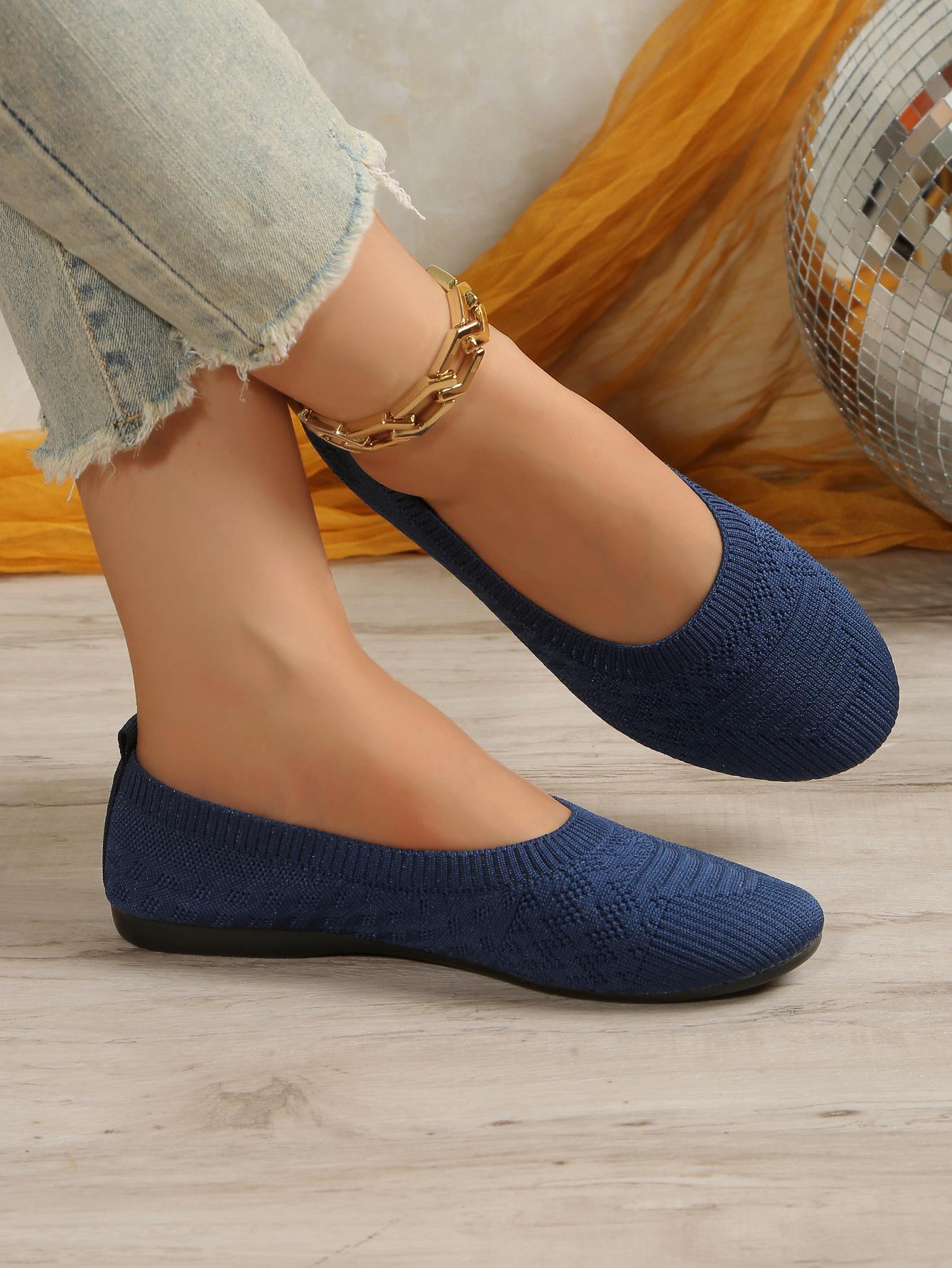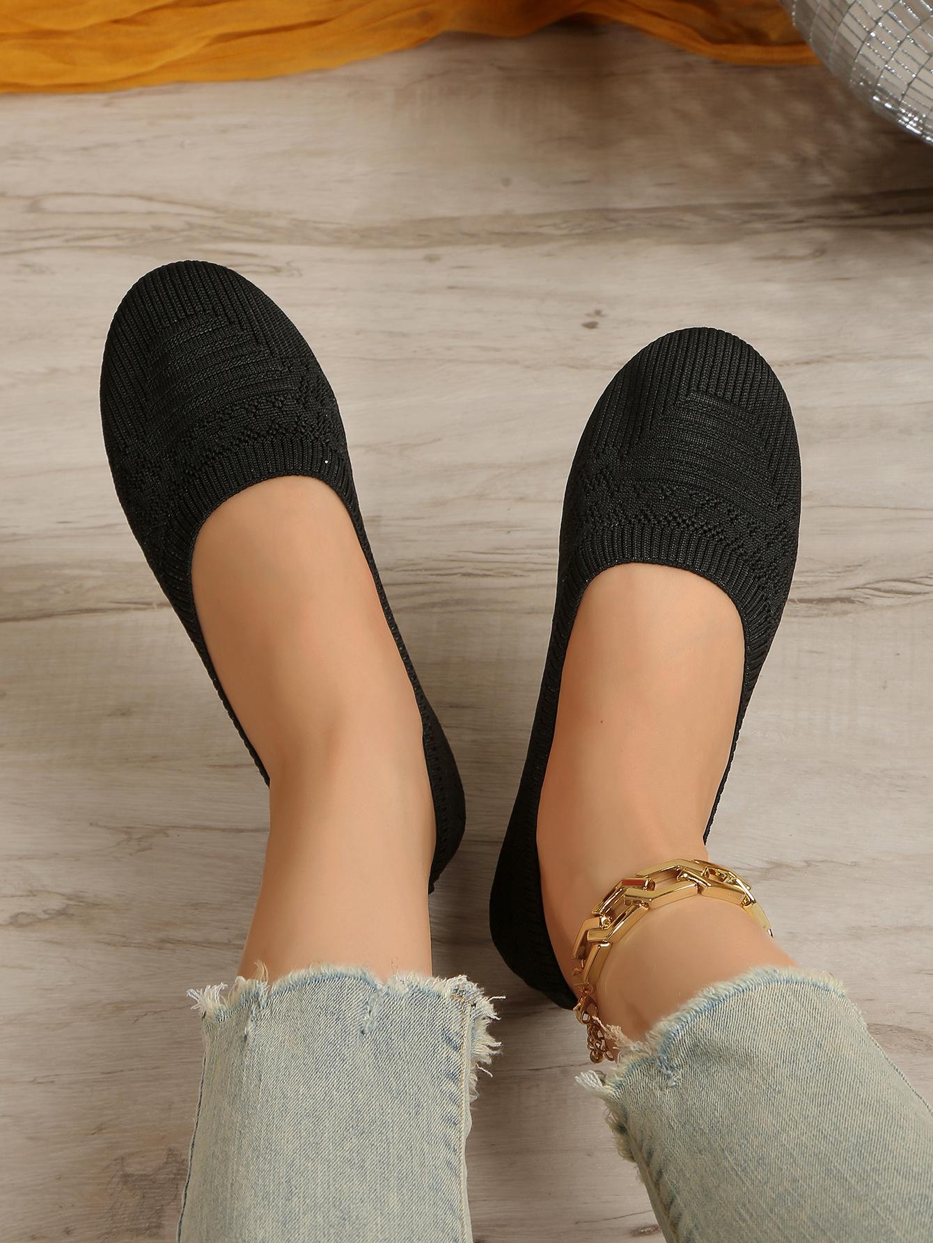 Comercio Exterior Otoño Nuevo Fly-knit Punta Redonda Plano Zapatos Individuales Mujer Transfronterizo Color Sólido Tejido Casual Corte Bajo Perezosos Zapatos de Trabajo