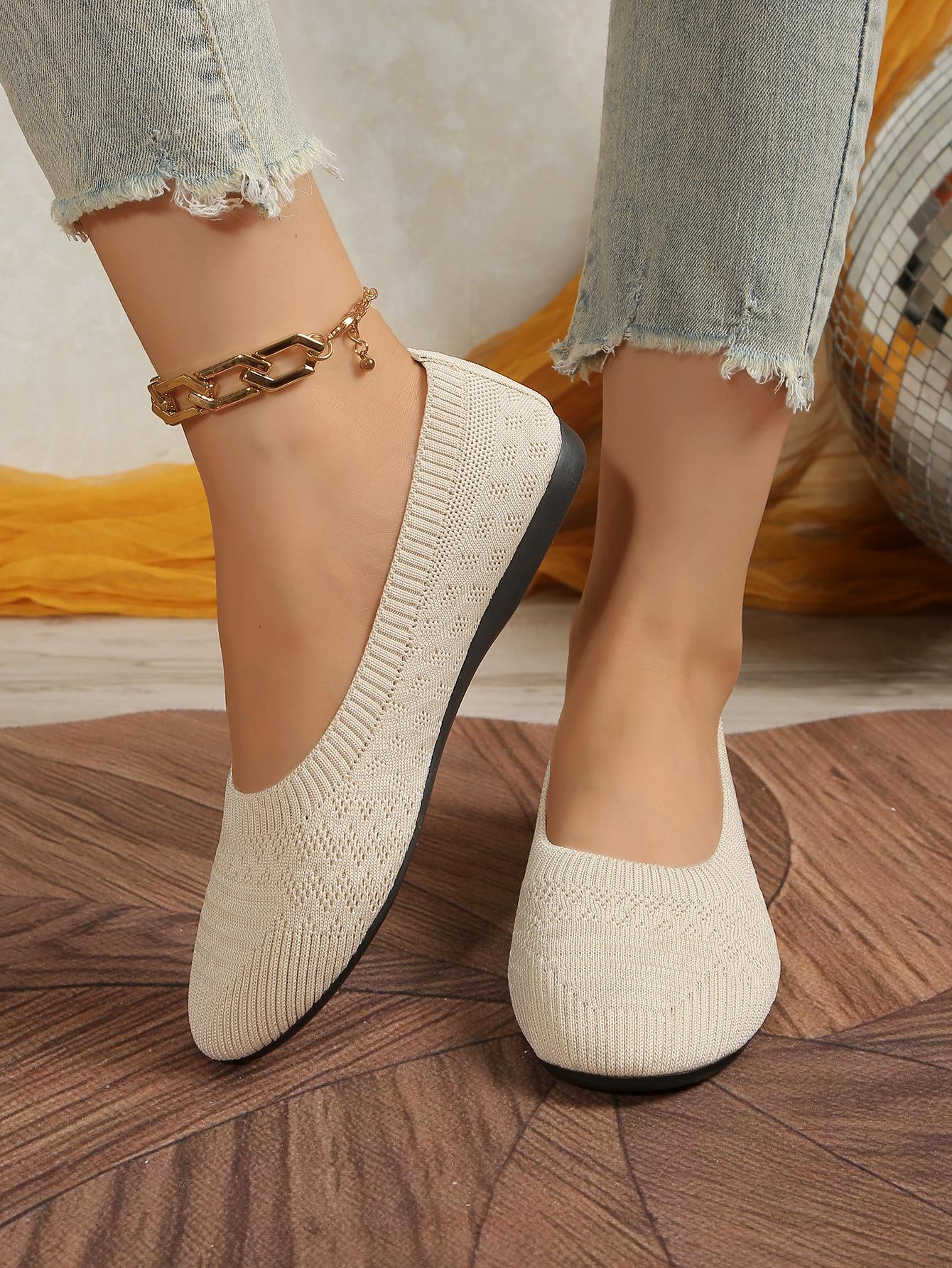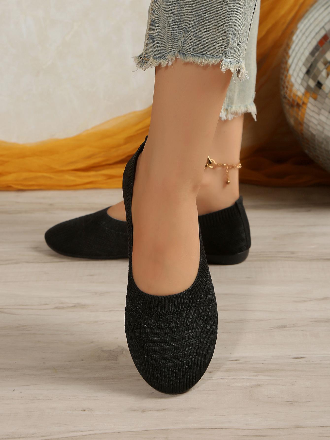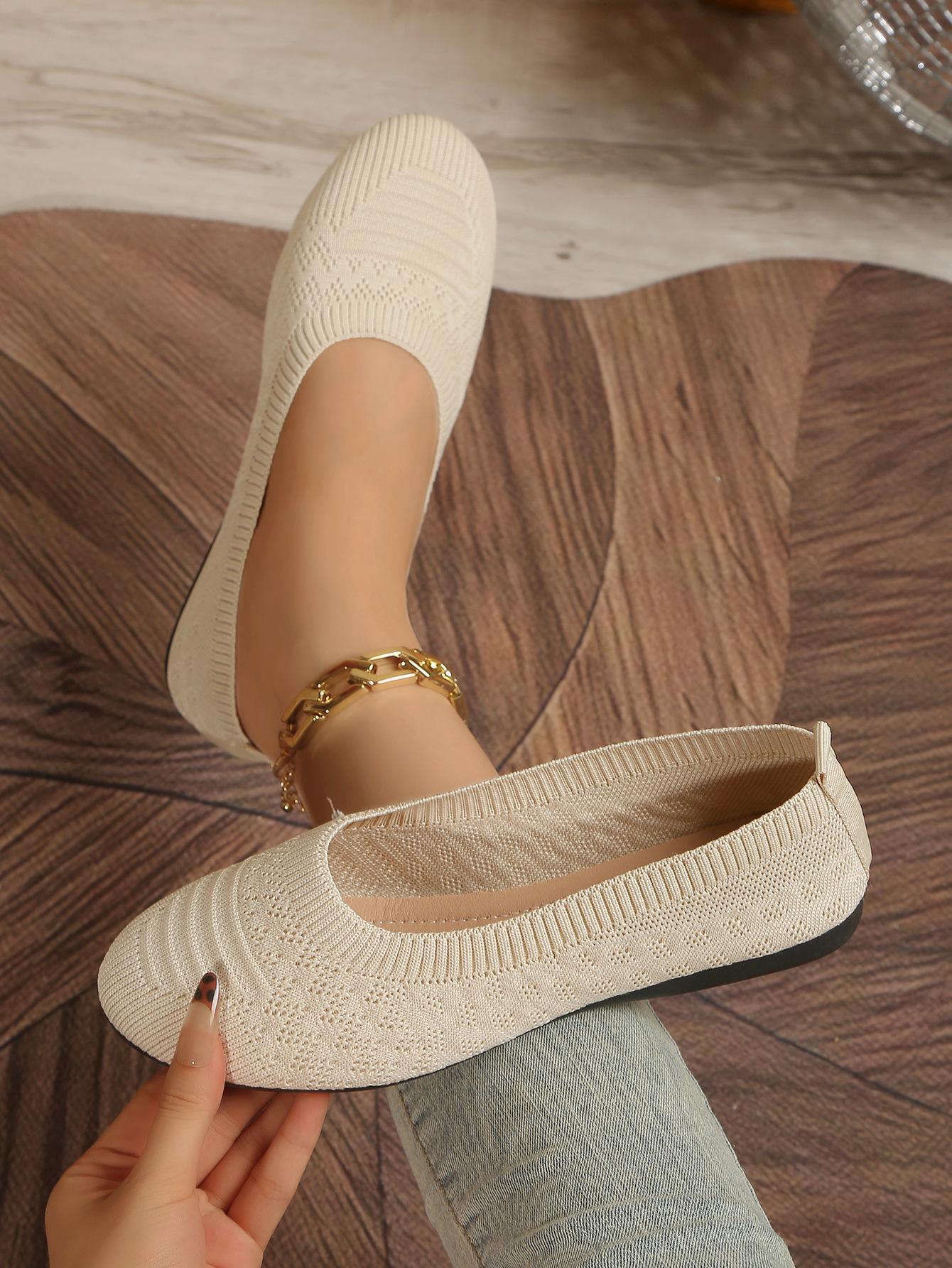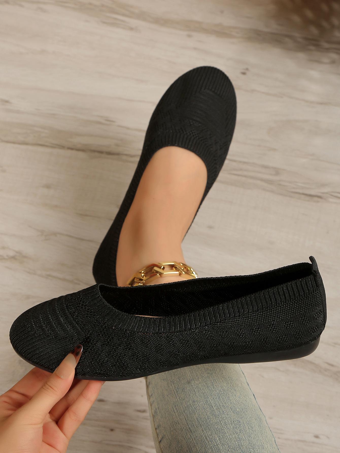 Comercio Exterior Otoño Nuevo Fly-knit Punta Redonda Plano Zapatos Individuales Mujer Transfronterizo Color Sólido Tejido Casual Corte Bajo Perezosos Zapatos de Trabajo