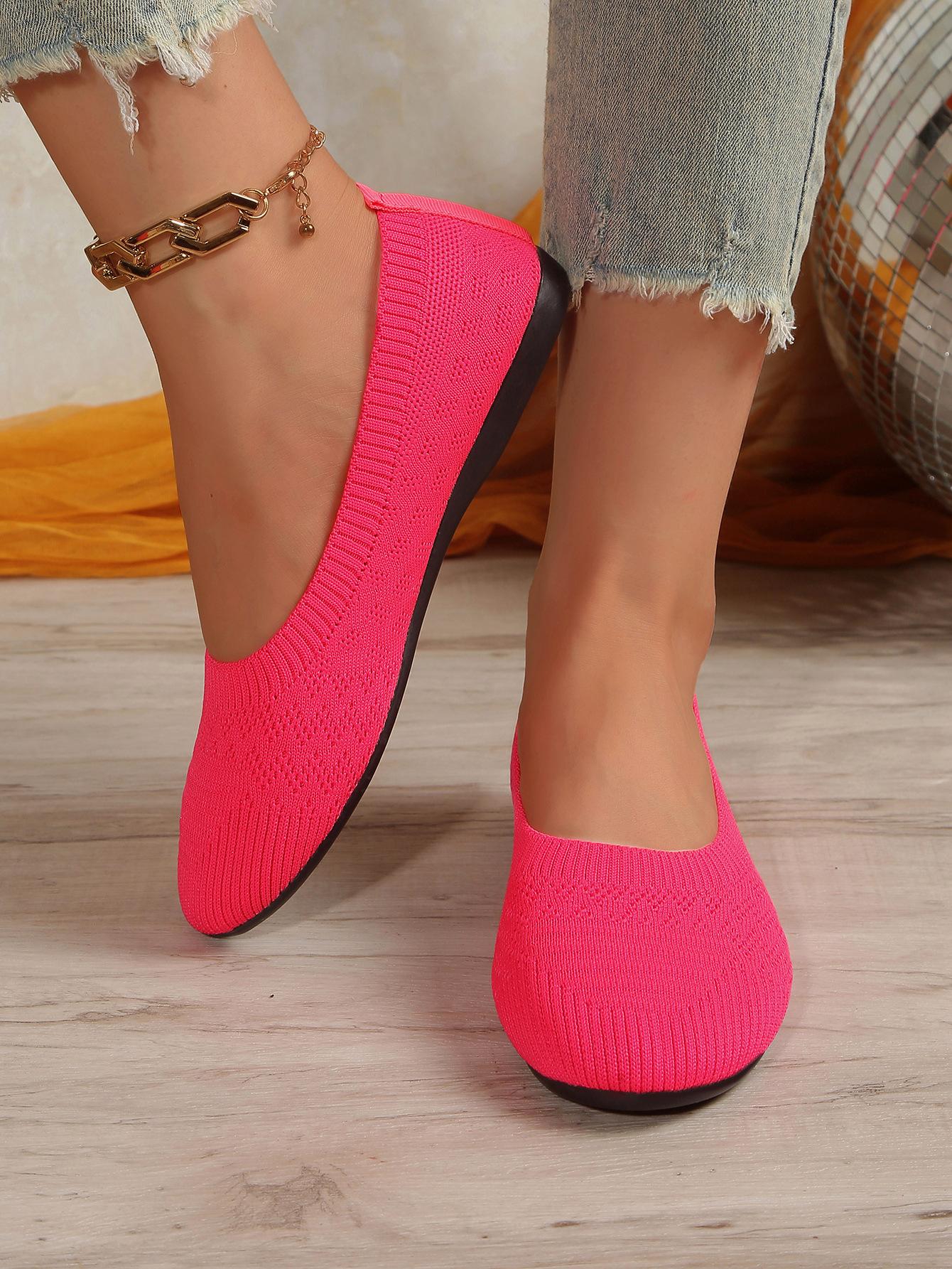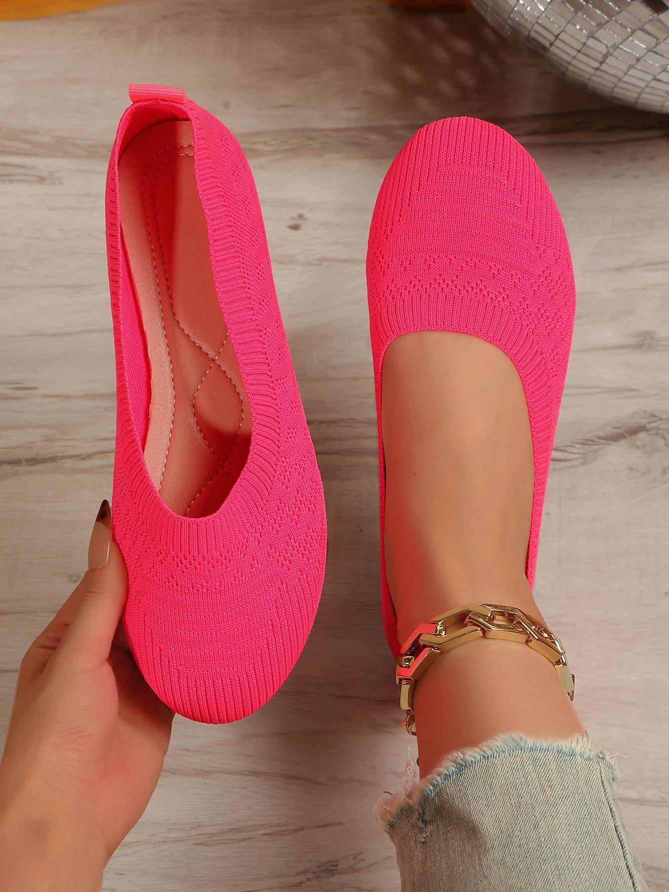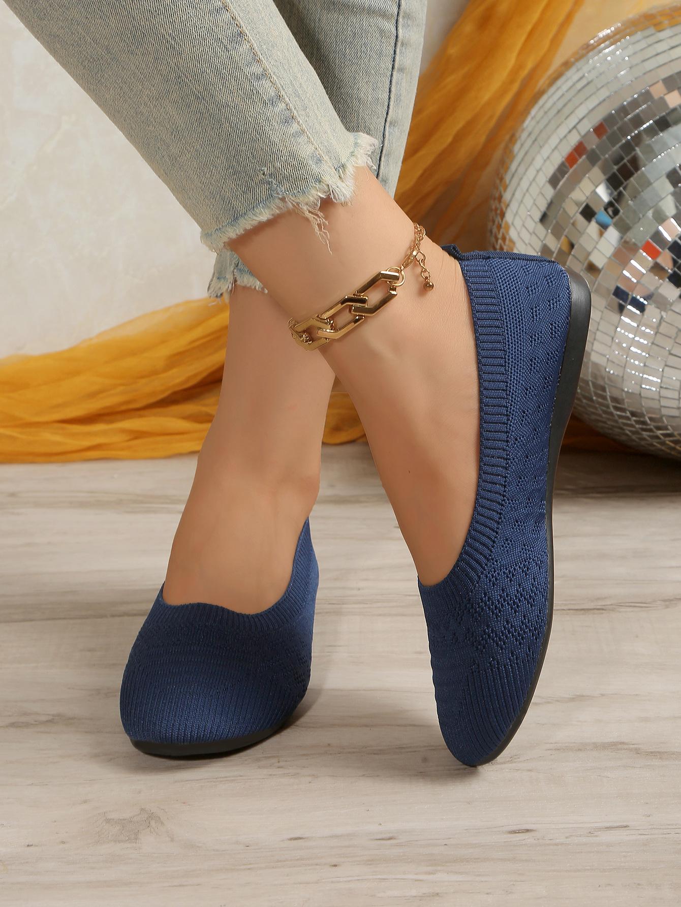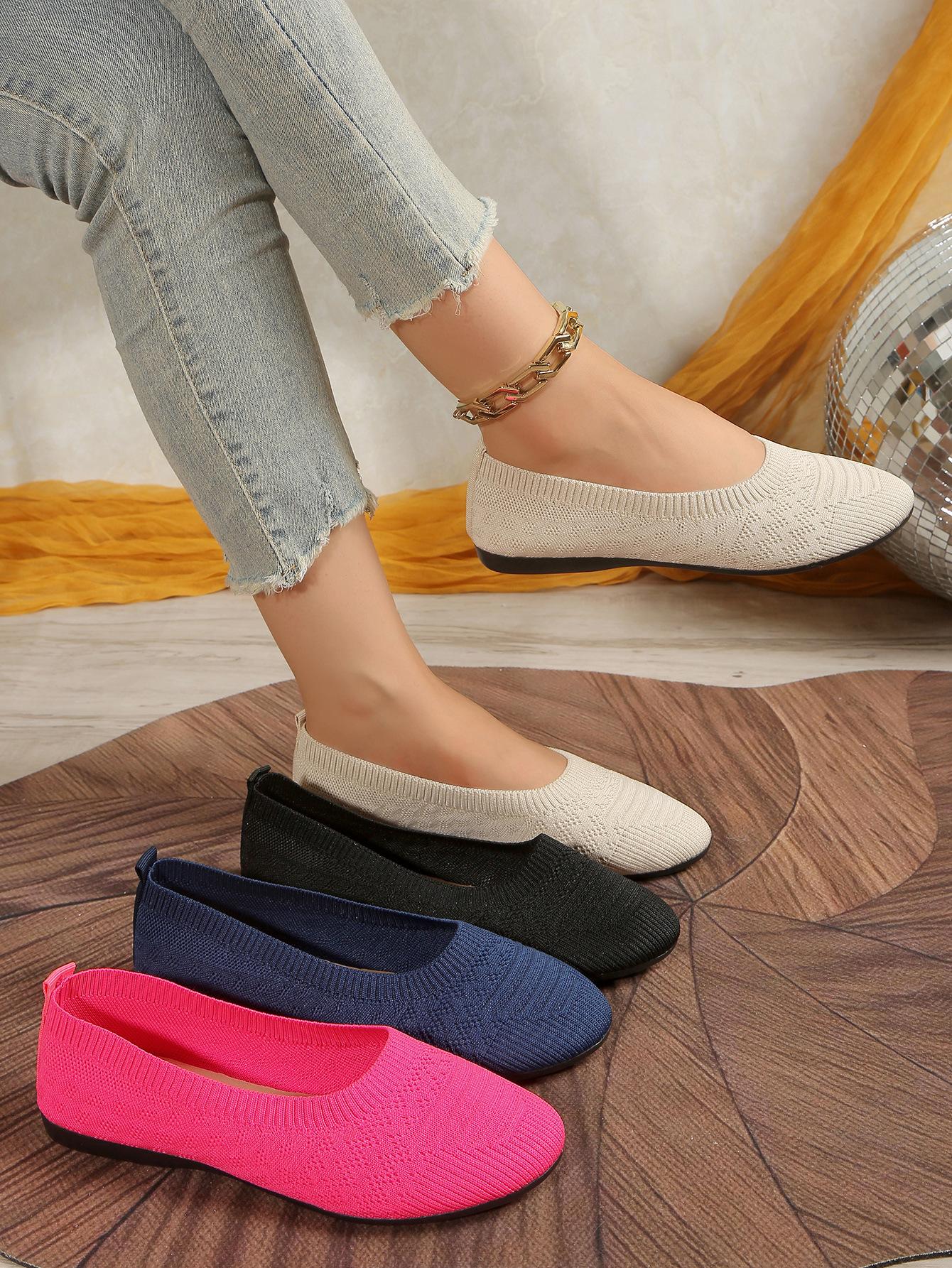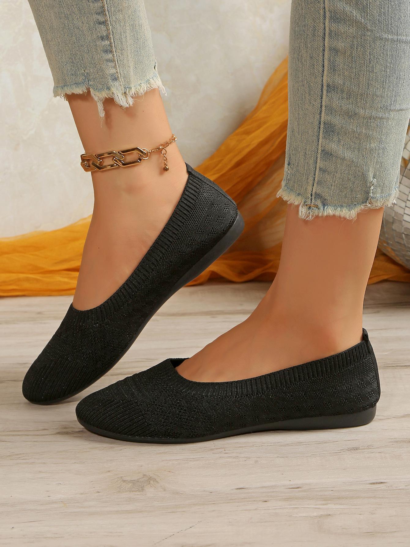 Comercio Exterior Otoño Nuevo Fly-knit Punta Redonda Plano Zapatos Individuales Mujer Transfronterizo Color Sólido Tejido Casual Corte Bajo Perezosos Zapatos de Trabajo