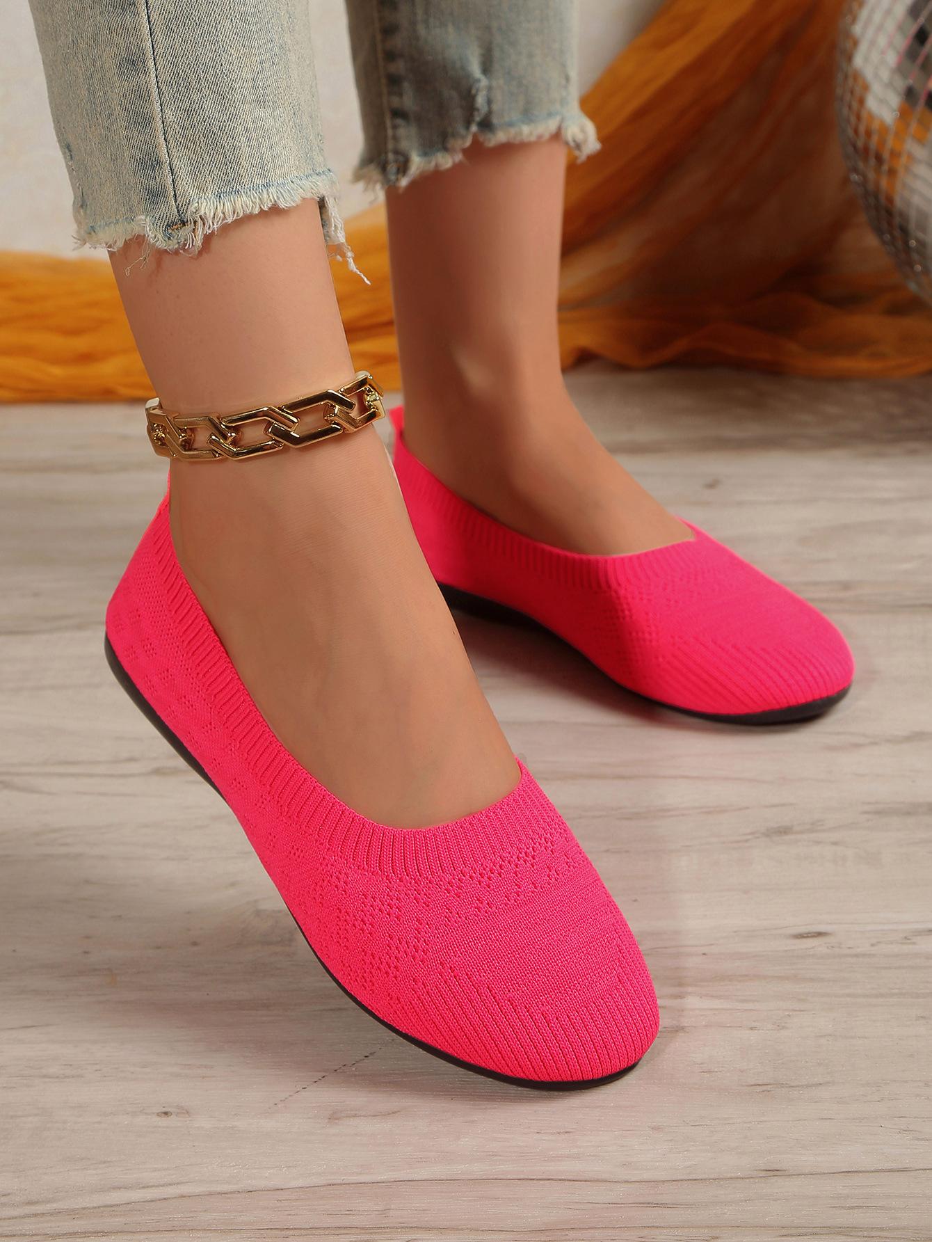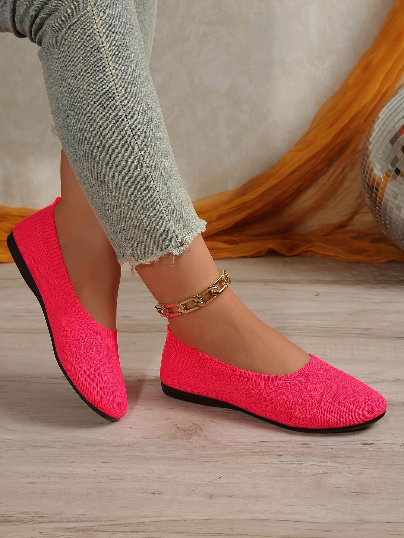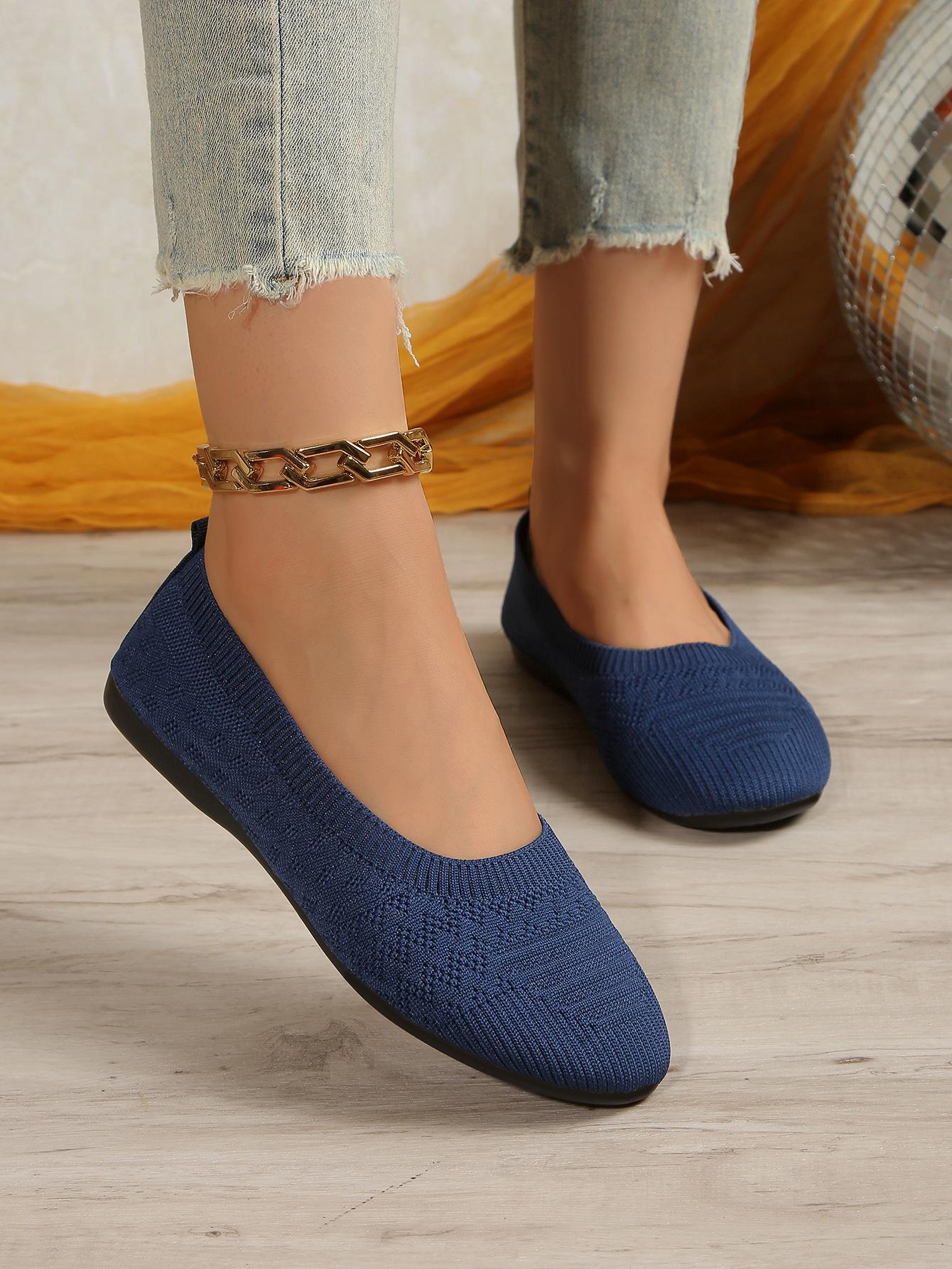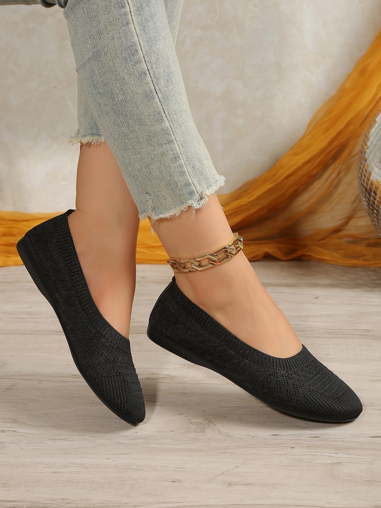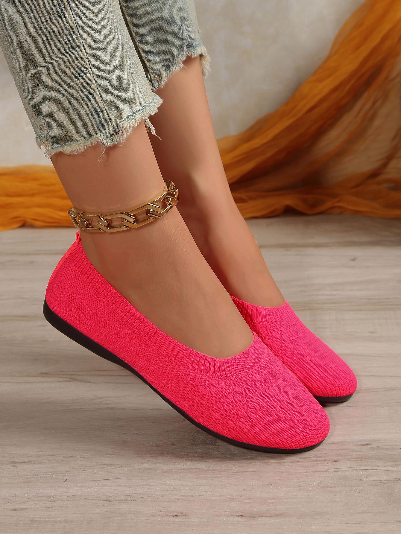 Comercio Exterior Otoño Nuevo Fly-knit Punta Redonda Plano Zapatos Individuales Mujer Transfronterizo Color Sólido Tejido Casual Corte Bajo Perezosos Zapatos de Trabajo