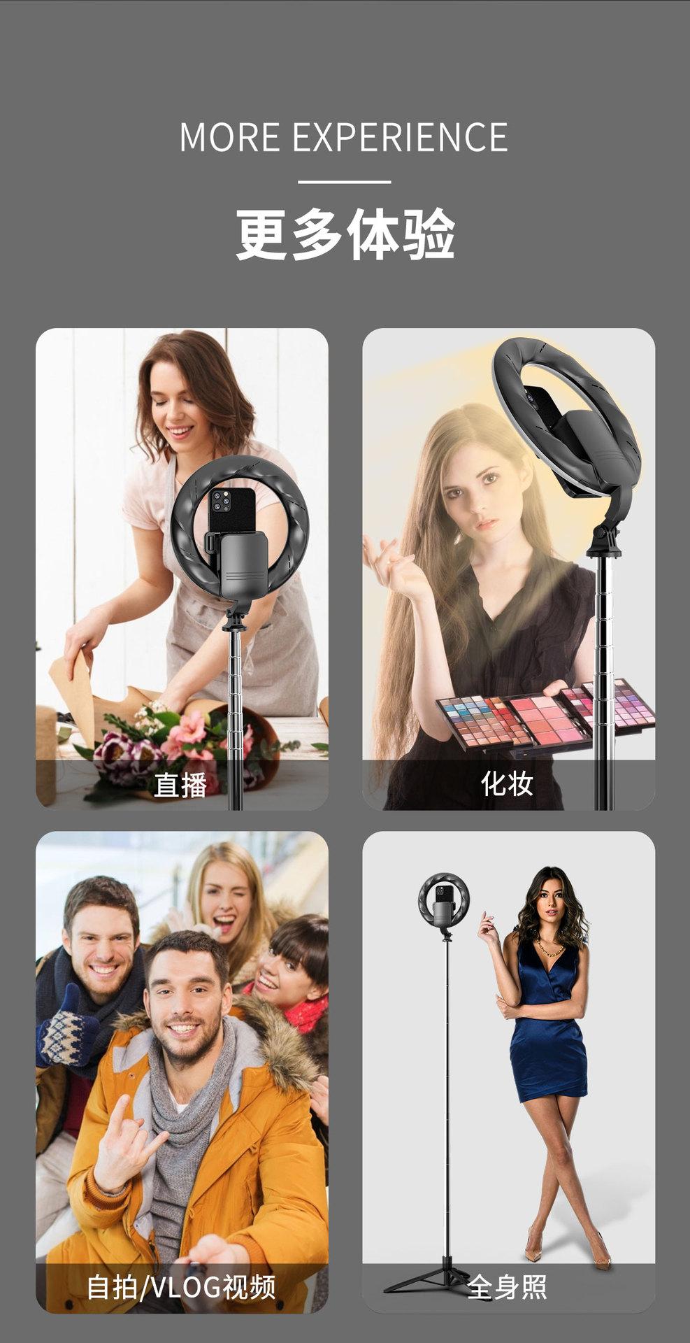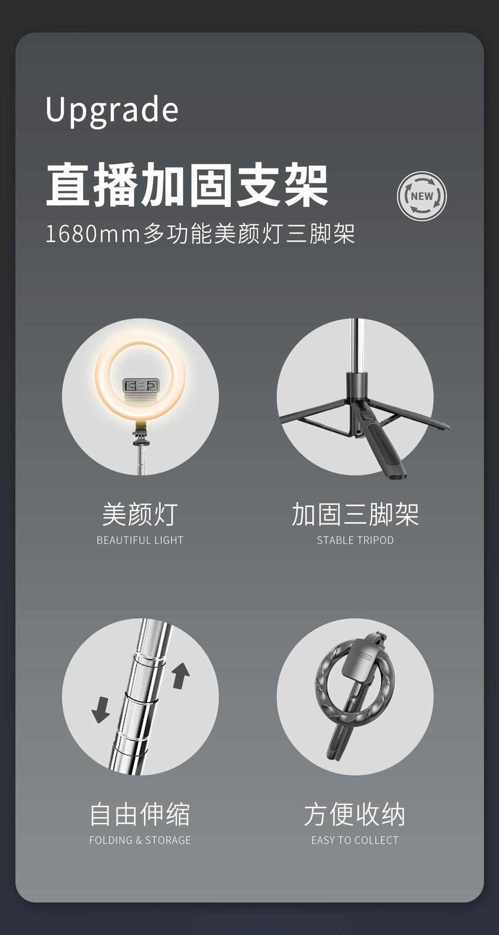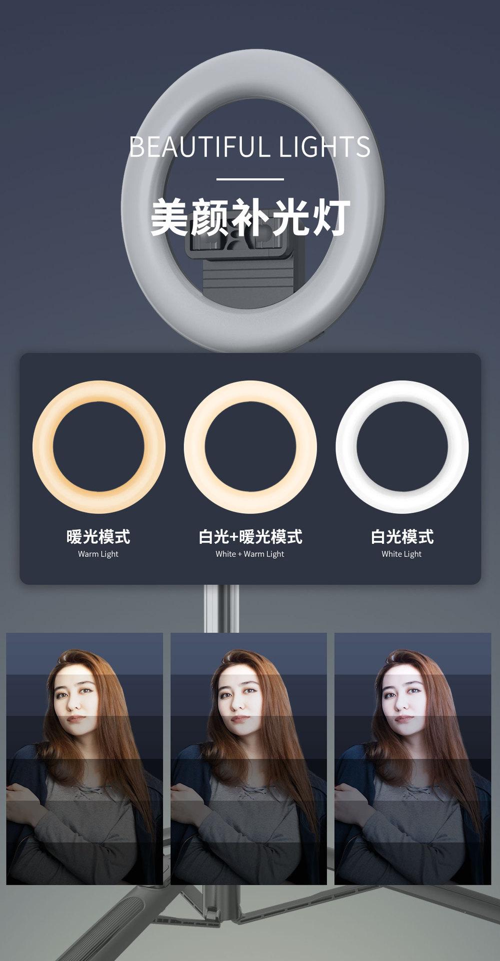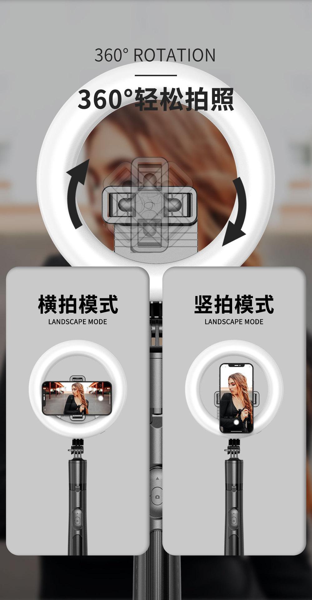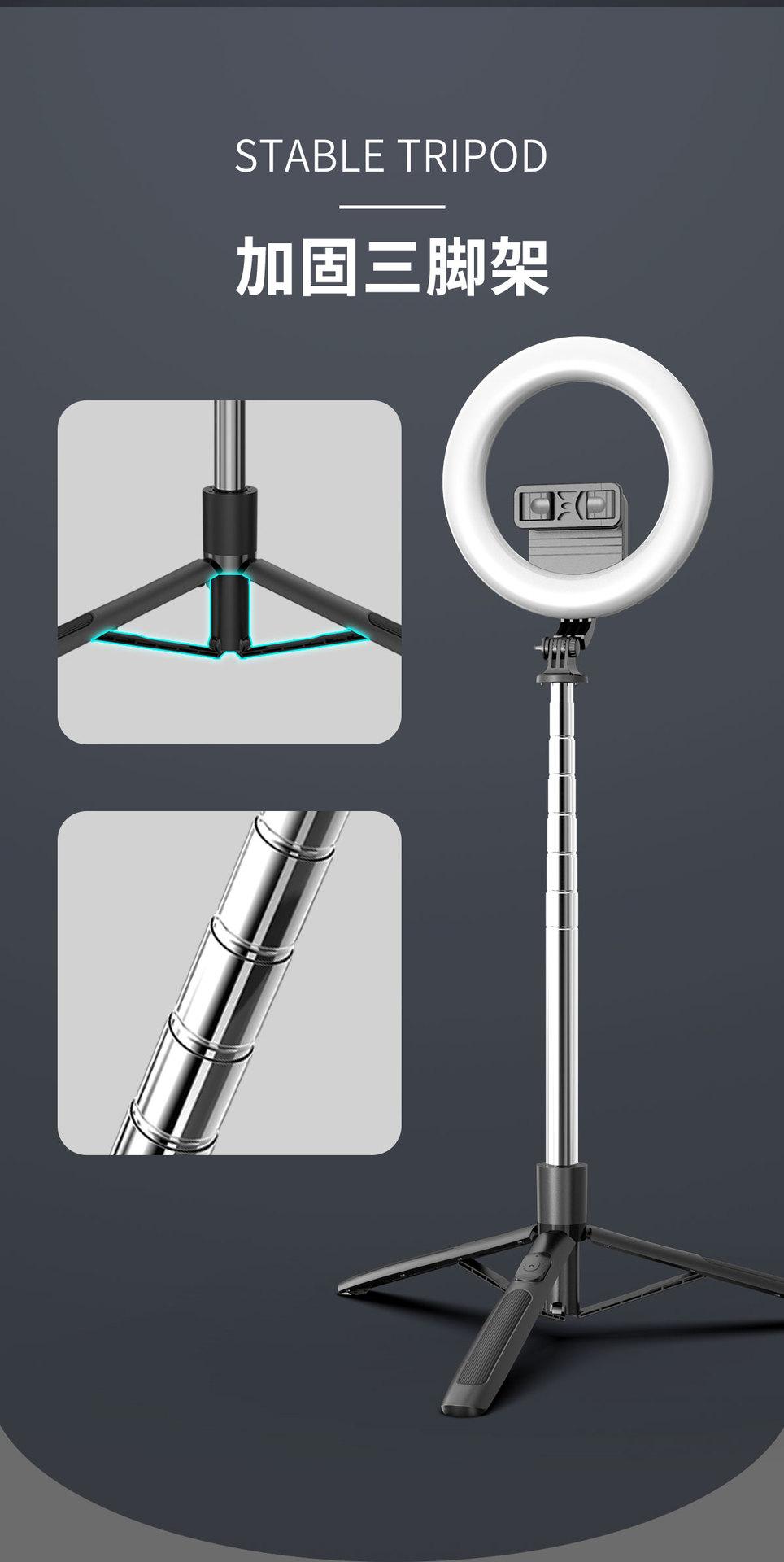 Hermoso Palo Selfie Trípode de Punto Tres en Uno Transmisión en Vivo Soporte para Teléfono Móvil Artefacto para Grabación en Exteriores Luz de Relleno de Anillo