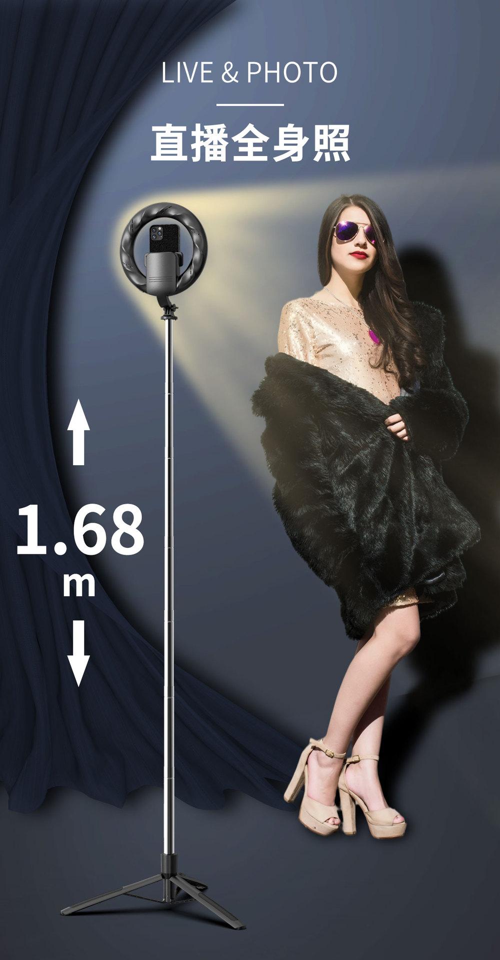 [q05s black 1.68m] special model for fill light + stainless steel shaft + bluetooth remote control + tripod