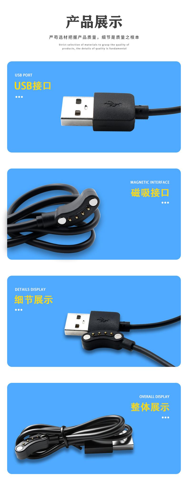 Cable de Datos Magnético 4 pines Reloj Inteligente Pulsera para Niños Pin de Contacto Fijo Cable de Carga Original Almacenamiento Cable de Datos