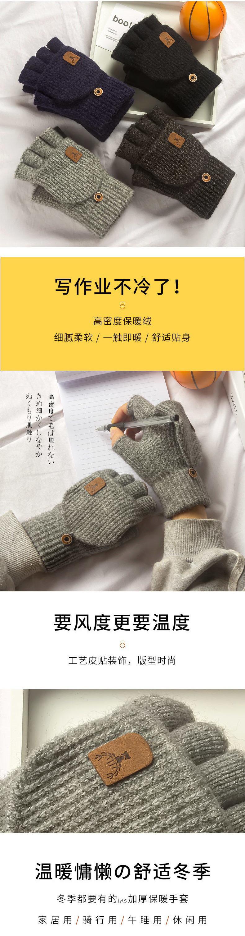 Guantes para Hombre Invierno Jacquard Medio Dedo Sin Dedos Flip-Top Tejidos Engrosados para Mujer Cálidos Juego En Stock Venta al por Mayor Fábrica
