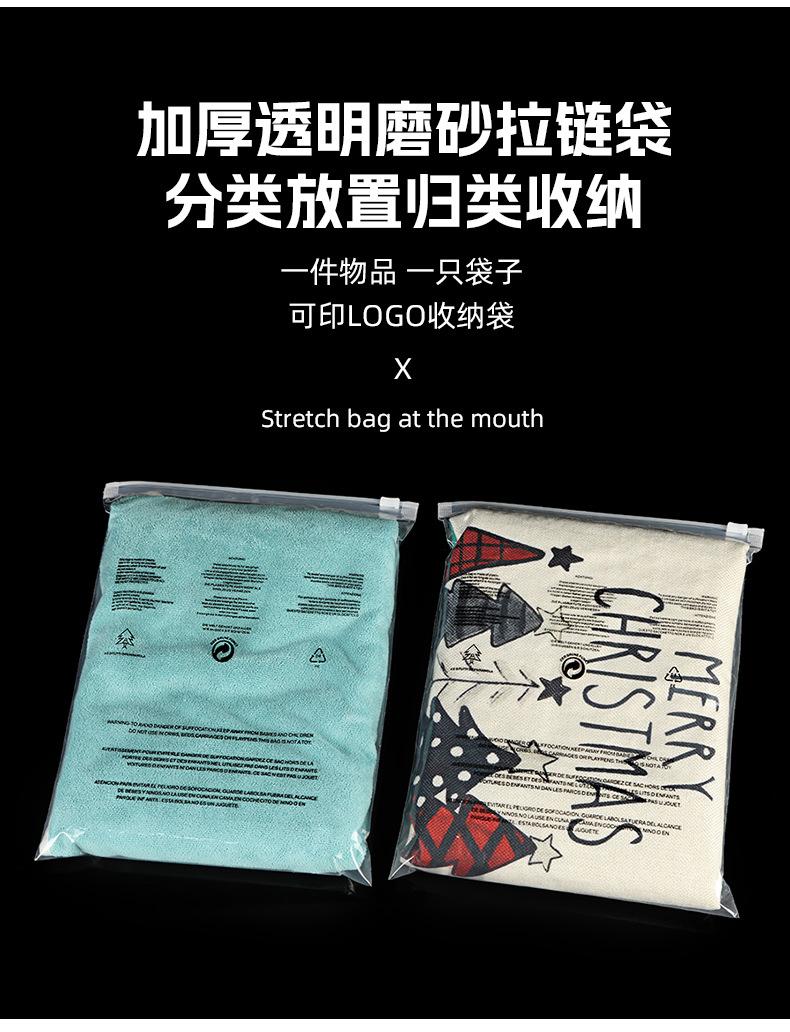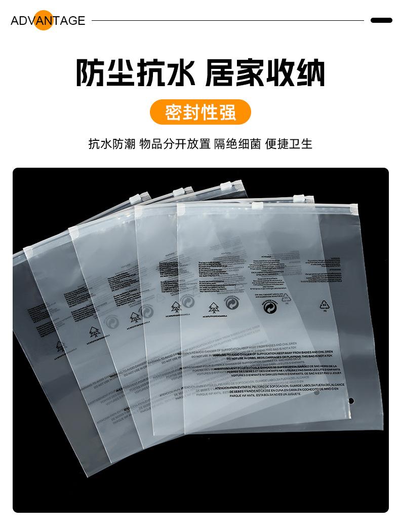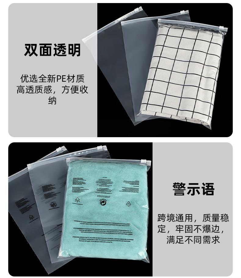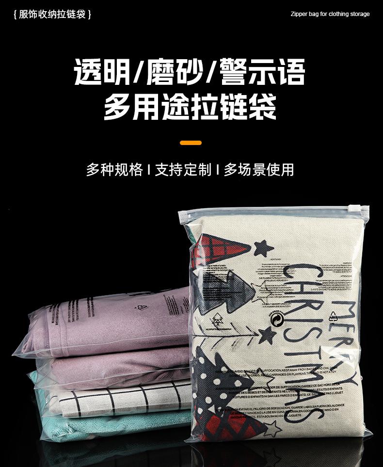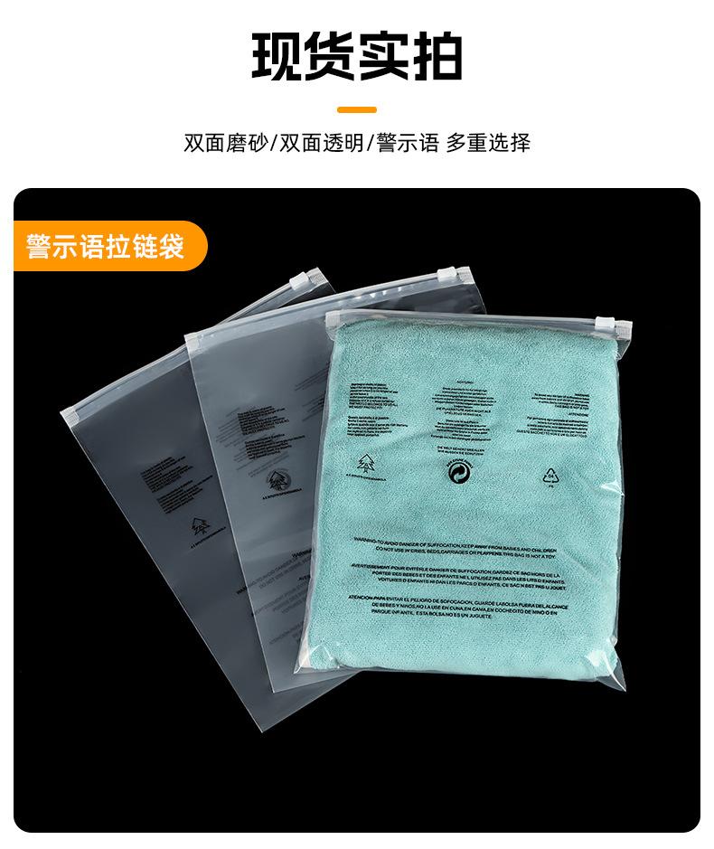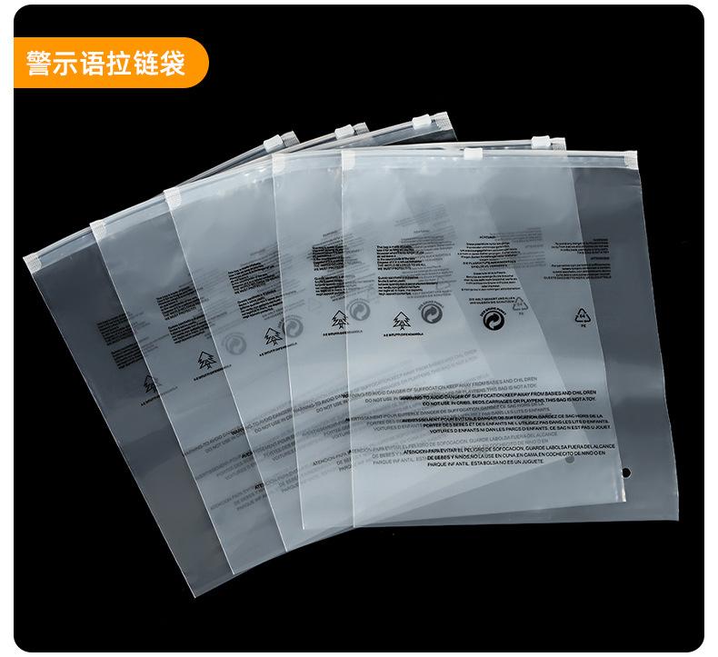 Bolsa con Cierre Transparente Escarchada Ropa Estampada Pe Plástico Bolsa Ziplock Ropa Íntima Advertencia Embalaje Bolsa para Empaque de Calcetines