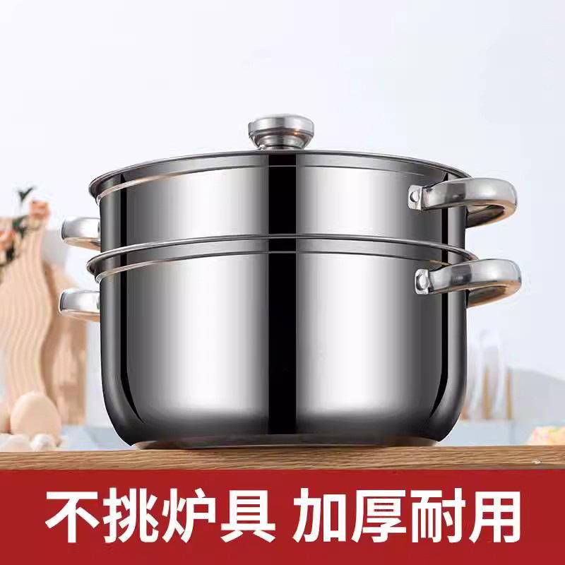 Vaporera pequeña de acero inoxidable para uso doméstico, adecuada para cocinar al vapor, cocinar y estofar, doble capa engrosada con cesta vaporera, olla para sopa para cocina de inducción, sin recubrimiento