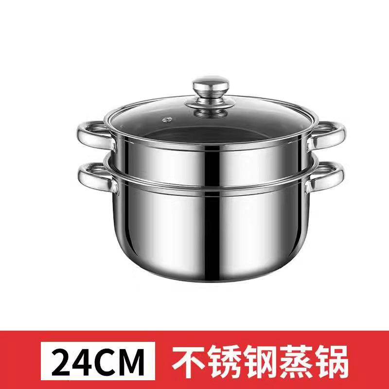 24cm double layer steamer with lid, 24cm single layer soup pot with lid