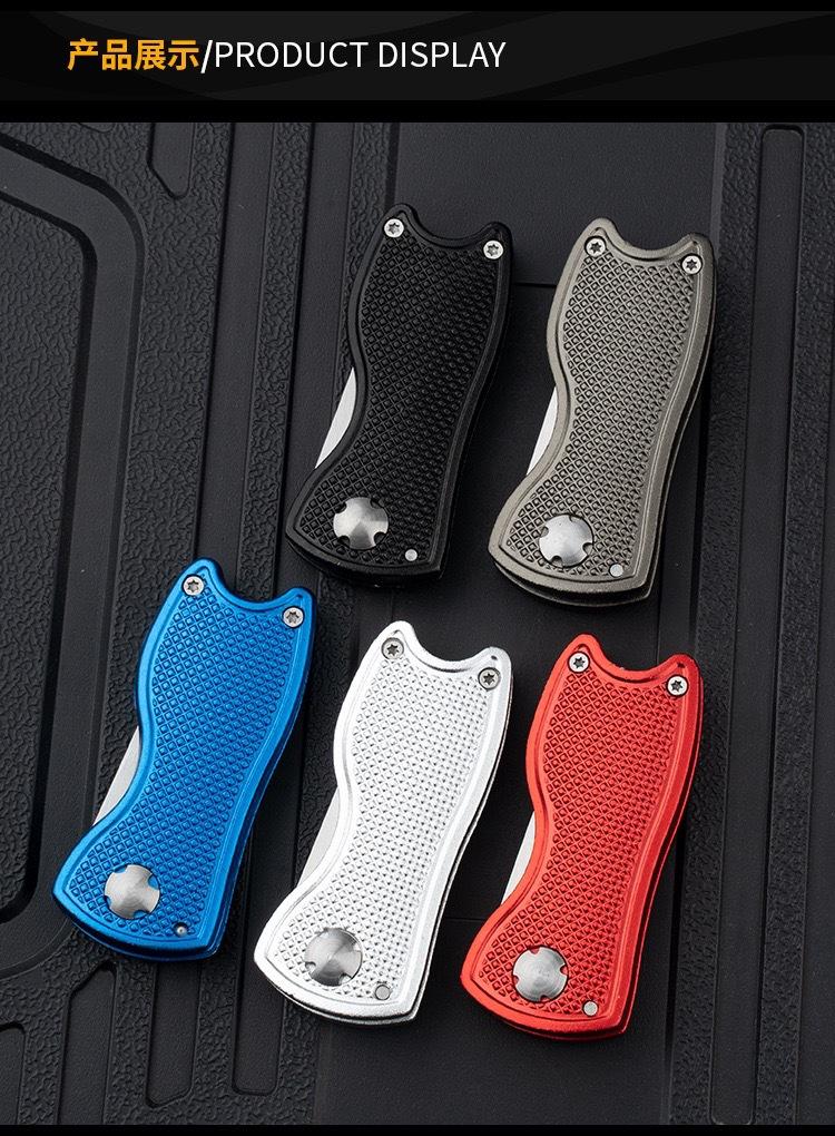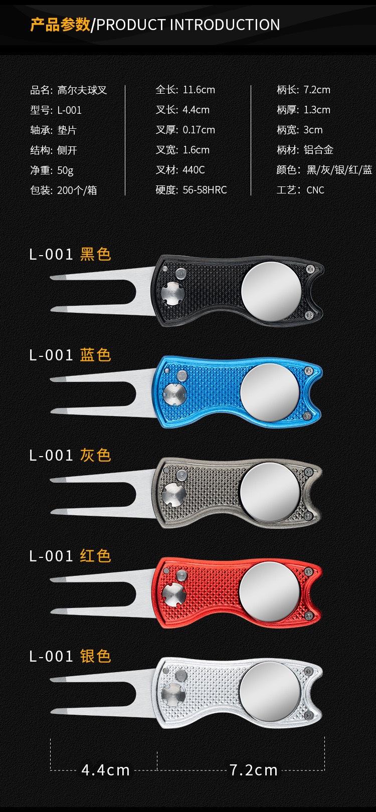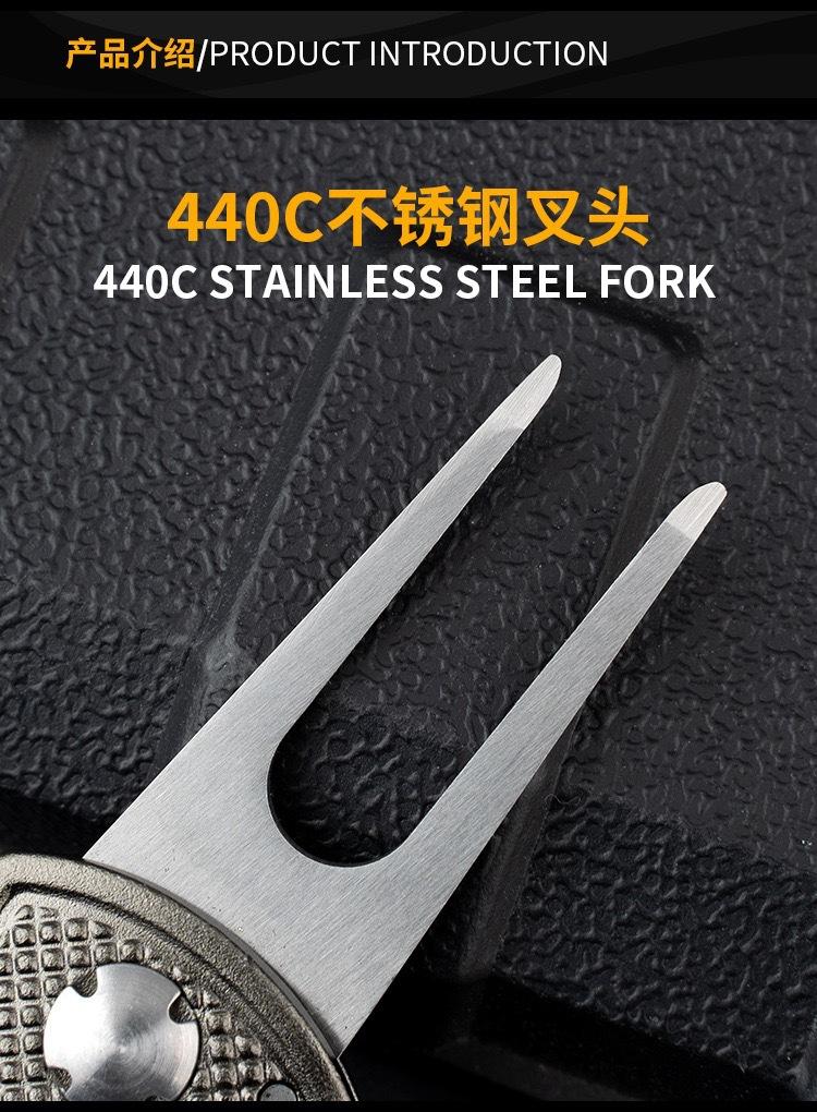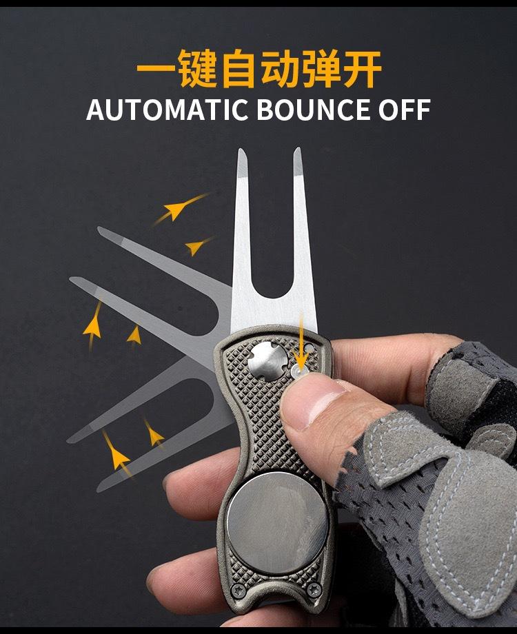 Herramienta de reparación de césped de resorte plegable de aleación de aluminio con mango en stock transfronterizo, tenedor de golf de acero inoxidable, tenedor verde