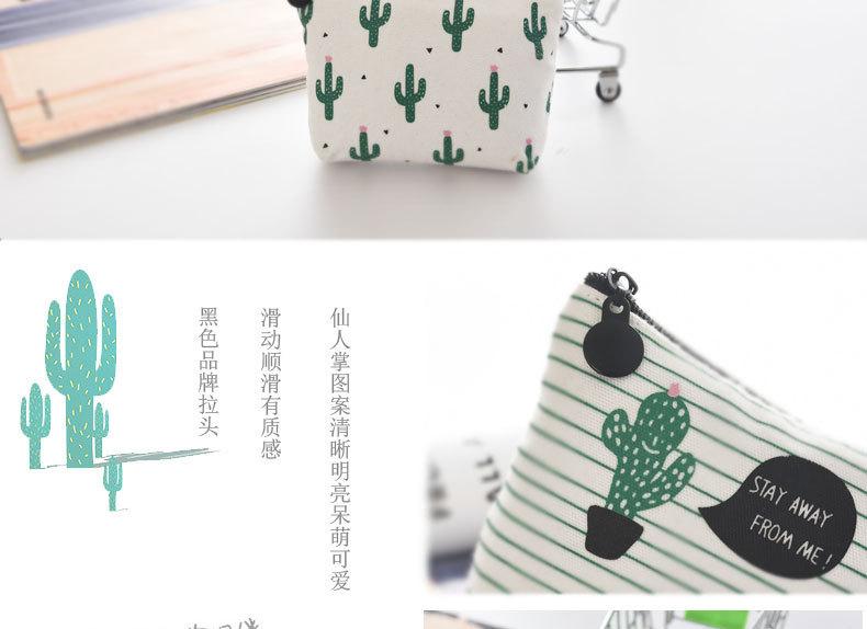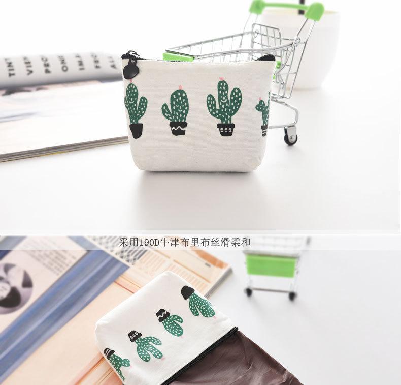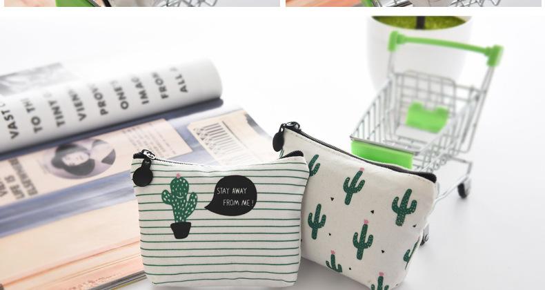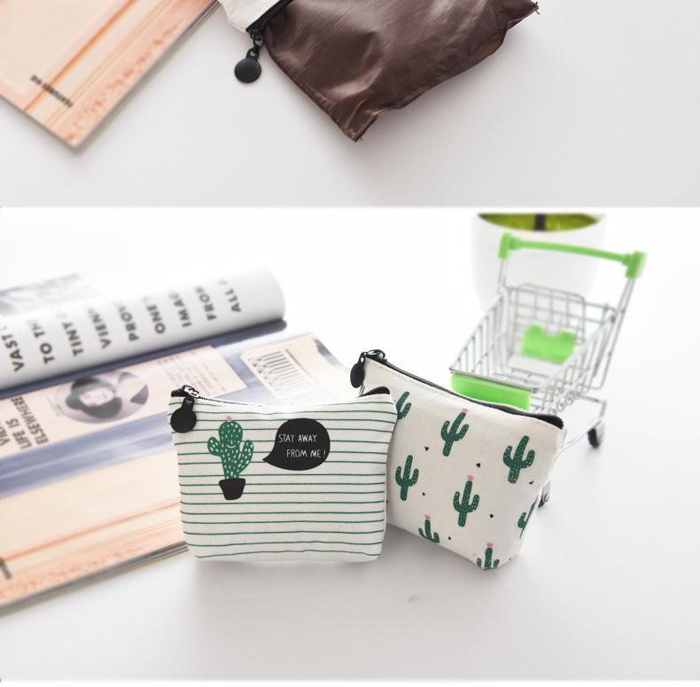 Nuevo Estilo Fresco Lona Triángulo Cactus Monedero Bolsa Pequeña Bolsa para Llaves Mini Bolsa para Tarjetas Bancarias para Mujer Bolsa de Tela Billetera