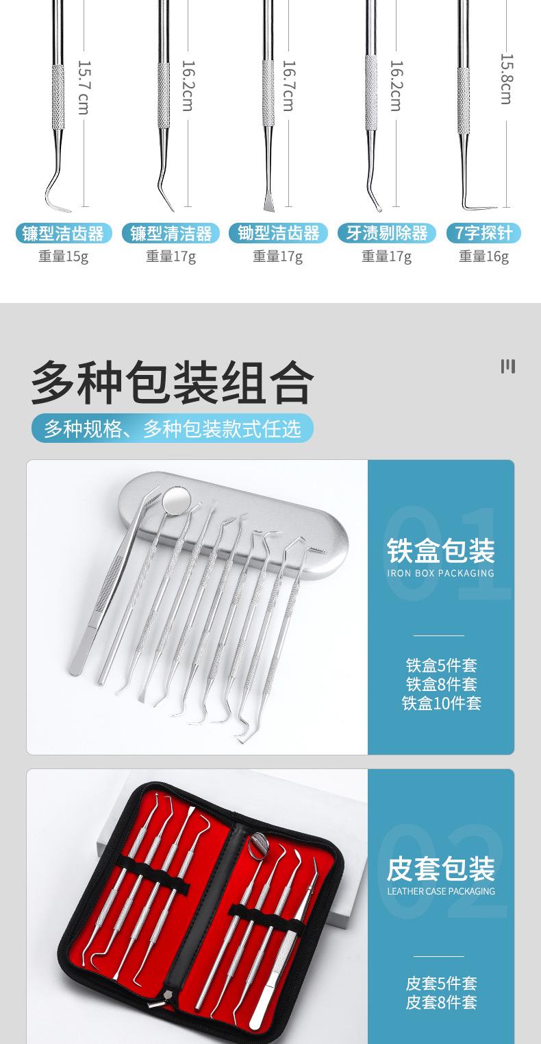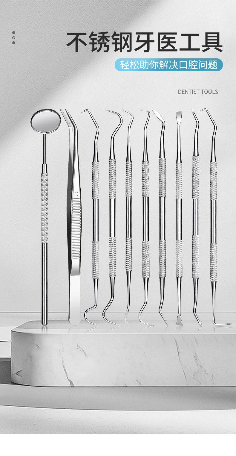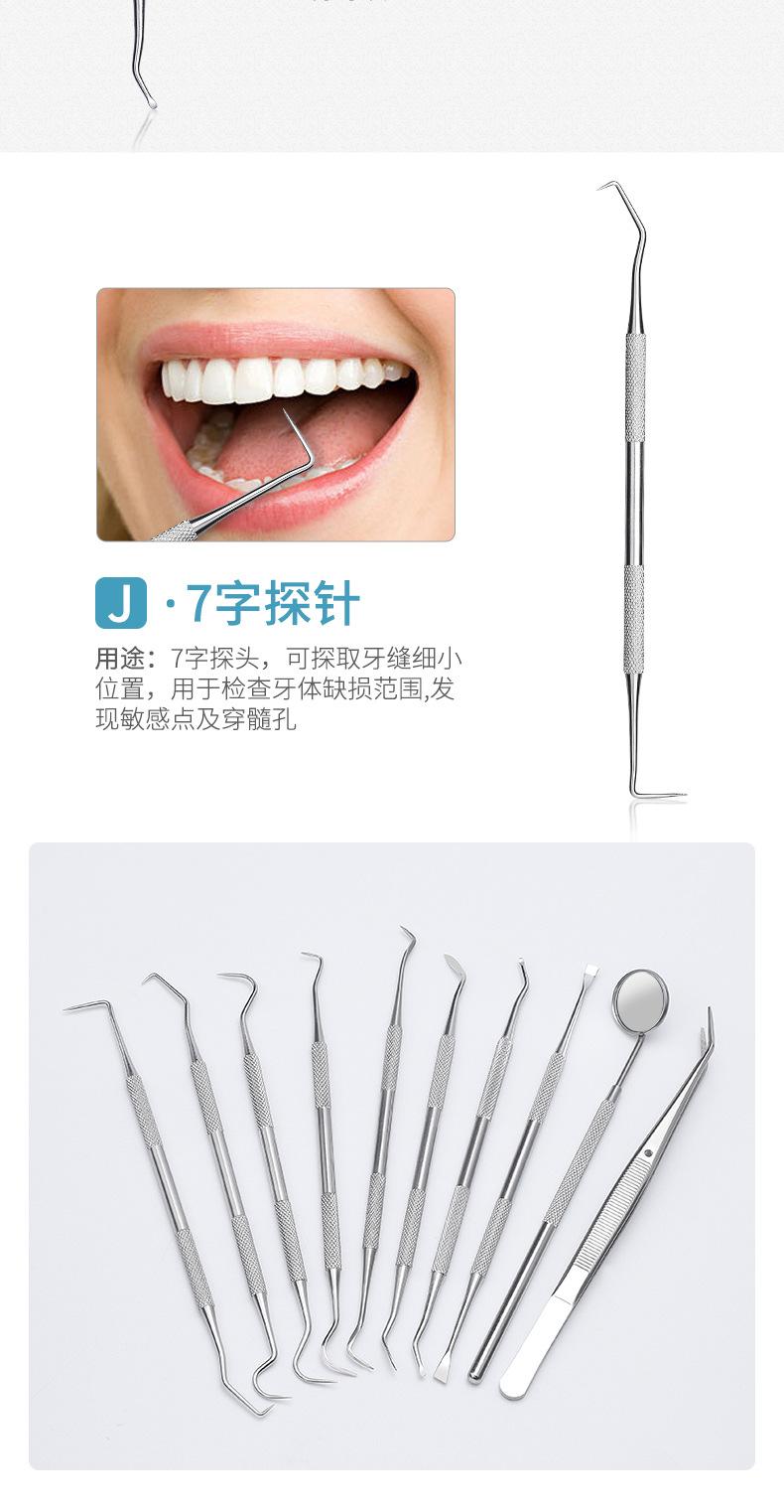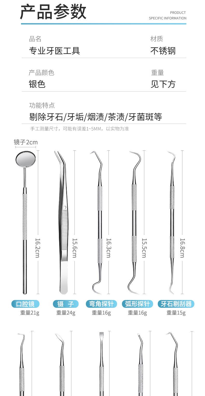 Double curved tweezers, Oral mirror, 7-character probe, Curved probe, Corner probe, Sickle cleaner, Hoe-shaped...