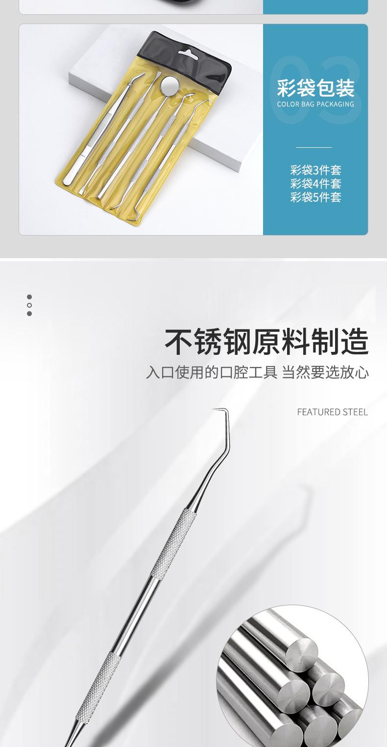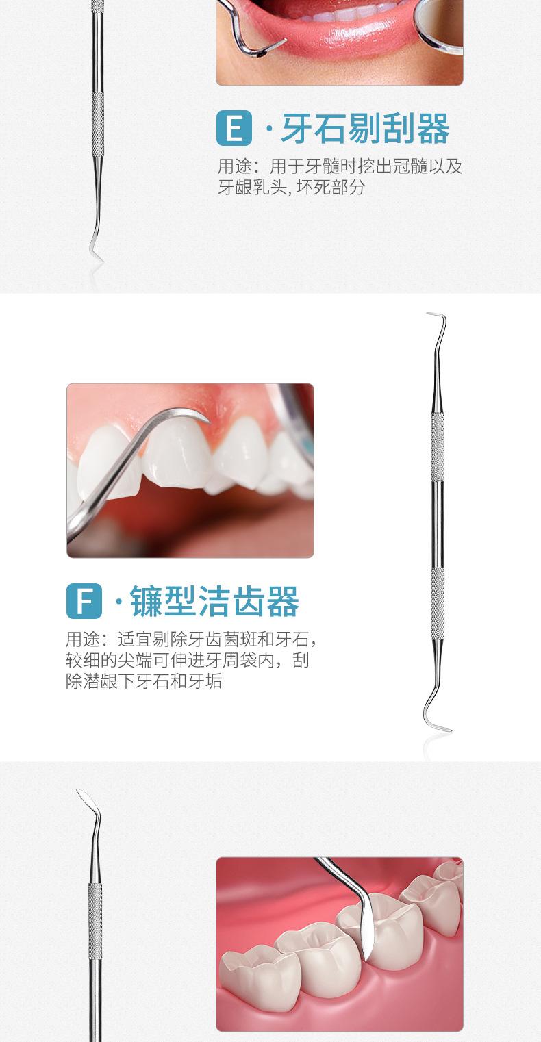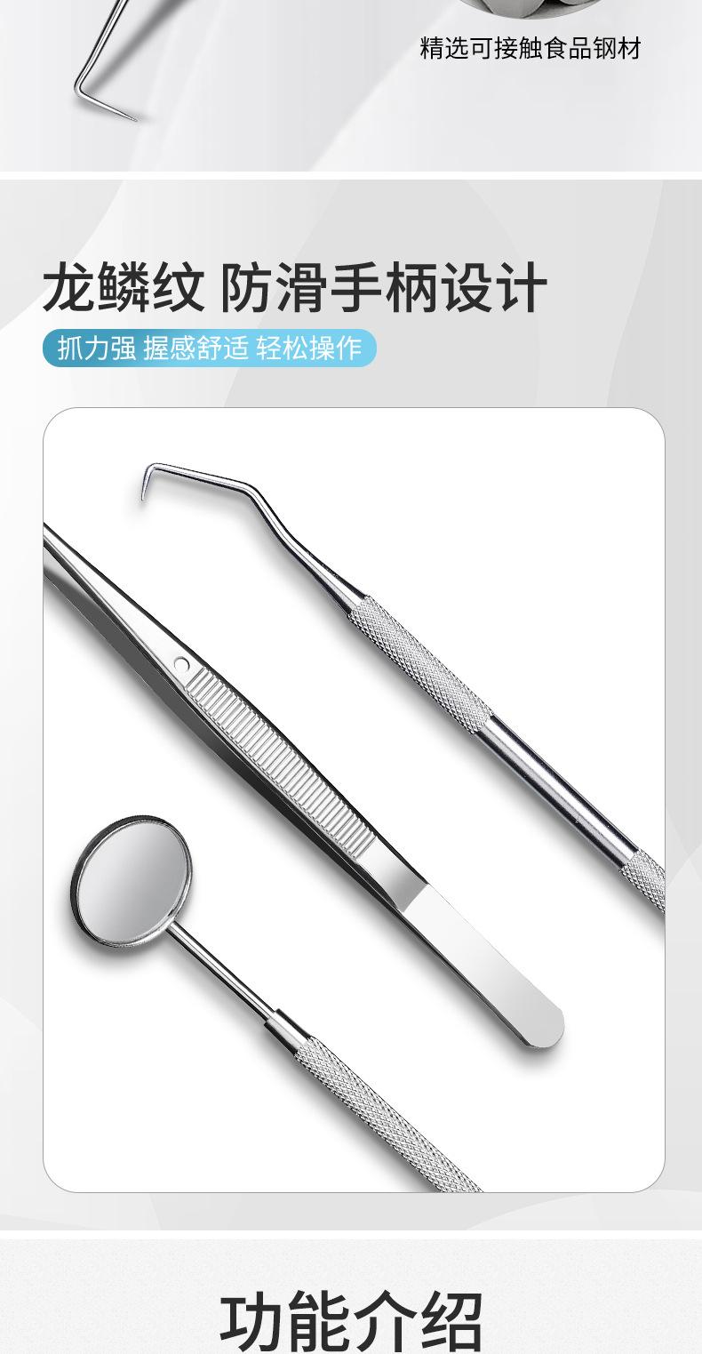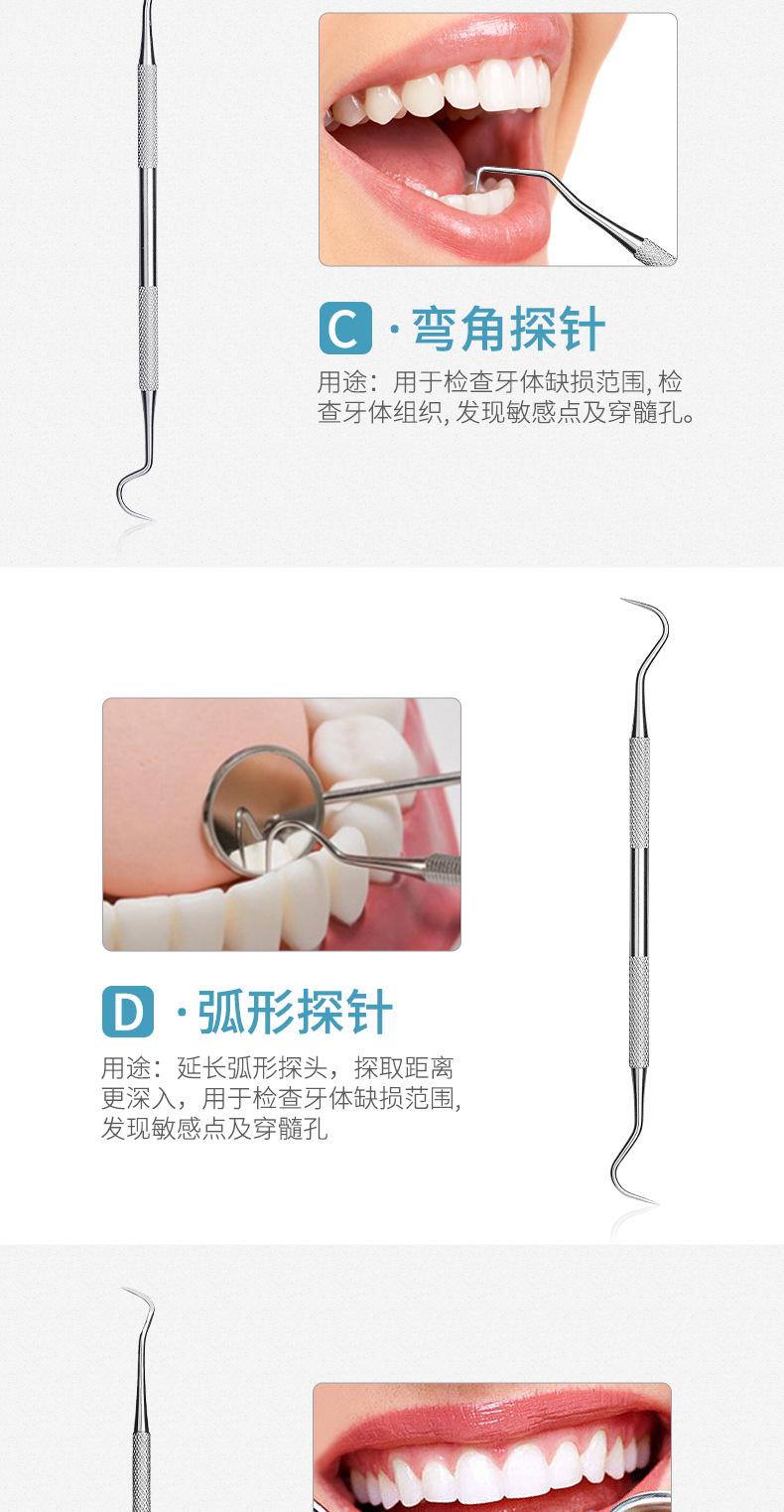 Double curved tweezers, Oral mirror, 7-character probe, Curved probe, Corner probe, Sickle cleaner, Hoe-shaped...
