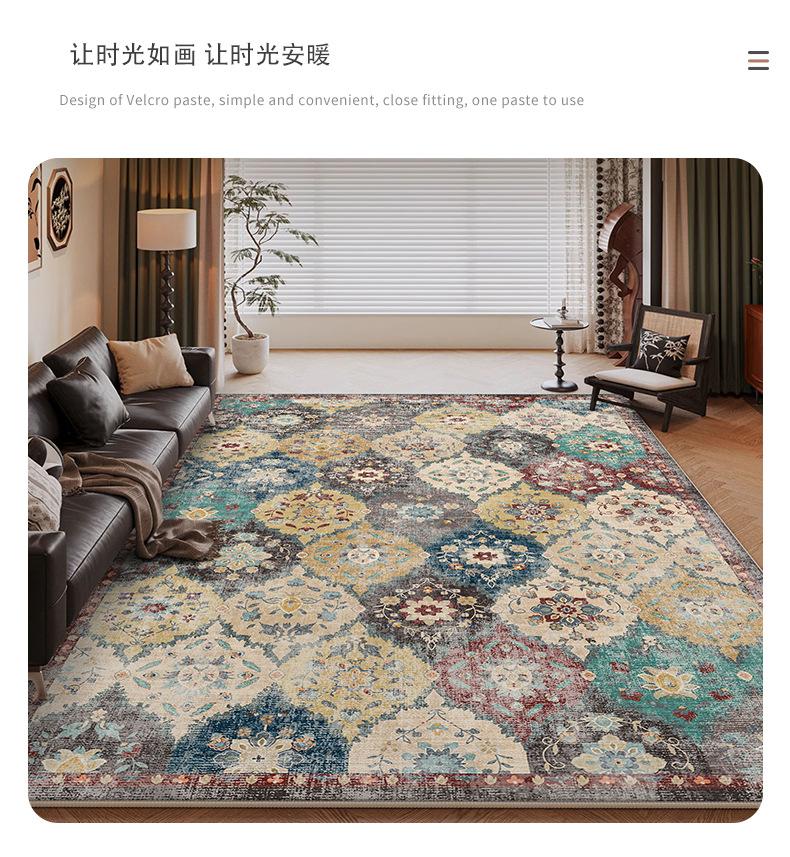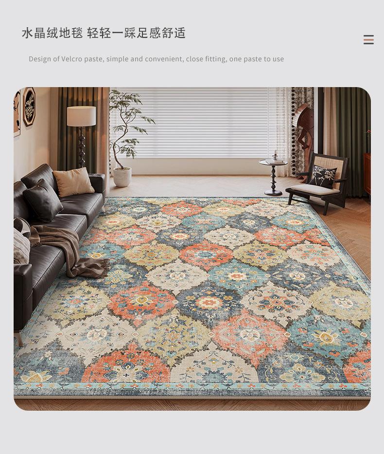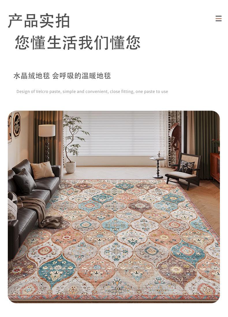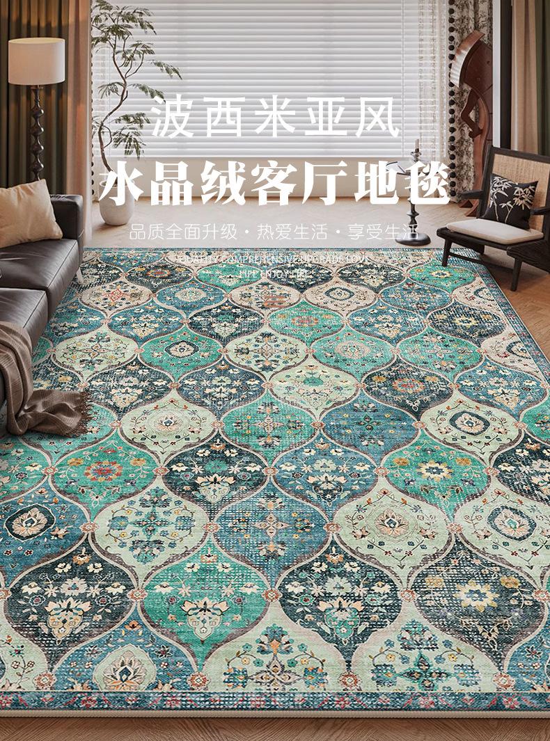 Alfombra de Terciopelo de Cristal Completo Estilo Bohemio Transfronterizo, Alfombra Antideslizante y Resistente a las Manchas para Sala de Estar, Alfombra de Área Grande de Fácil Cuidado