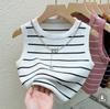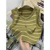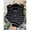 Tank Top Rayado Corto de Cintura Alta para Mujer, Verano 2025 Nuevo Top Ajustado sin Mangas Sin Collar