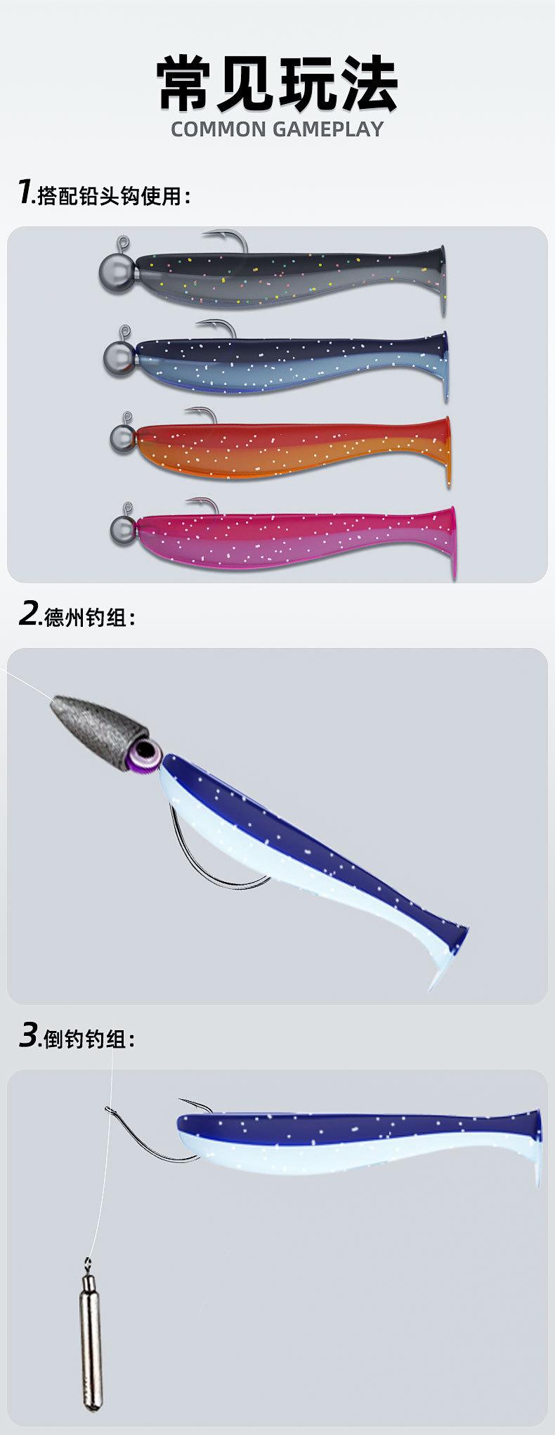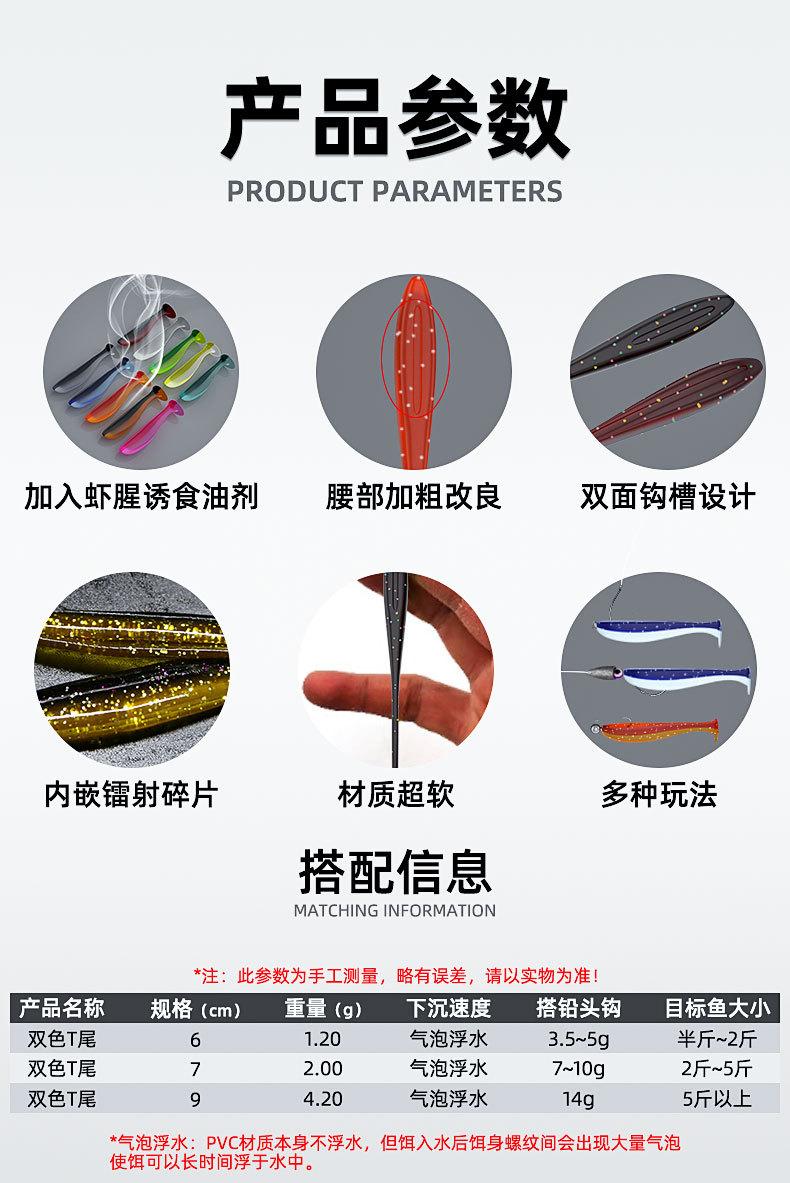 Señuelo Cebo Cebo Blando Cebo de Gusano Blando Venta al por Mayor Cola en T Bicolor Lua Equipo de Pesca Cebo Falso