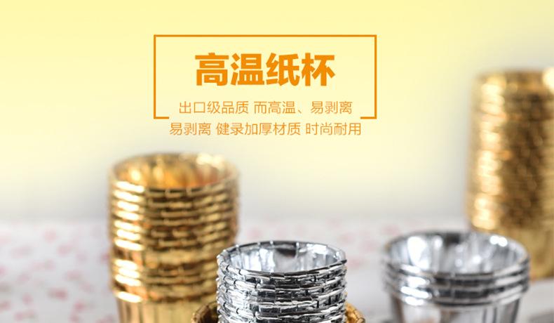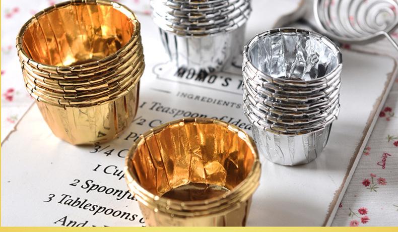 Pastel Magdalenas Soporte de Papel Oro Plata Horneado Mafen Vaso Película de Forro a Prueba de Aceite Vaso de Papel Rizado Vaso Enrollado Engrosado