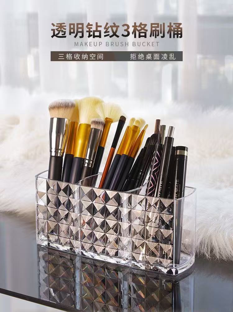 Caja de Almacenamiento de Cosméticos Acrílico Almacenamiento Plástico Transparente Engrosado Hogar Estudiante Escritorio Tubo de Almacenamiento para Brochas de Maquillaje