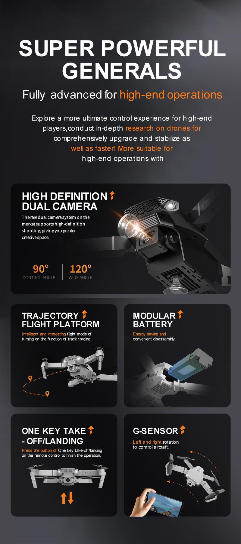 Fotografía aérea transfronteriza aeronave de cuatro ejes con doble cámara larga duración HD aeronave de control remoto comercio exterior dron E88pro